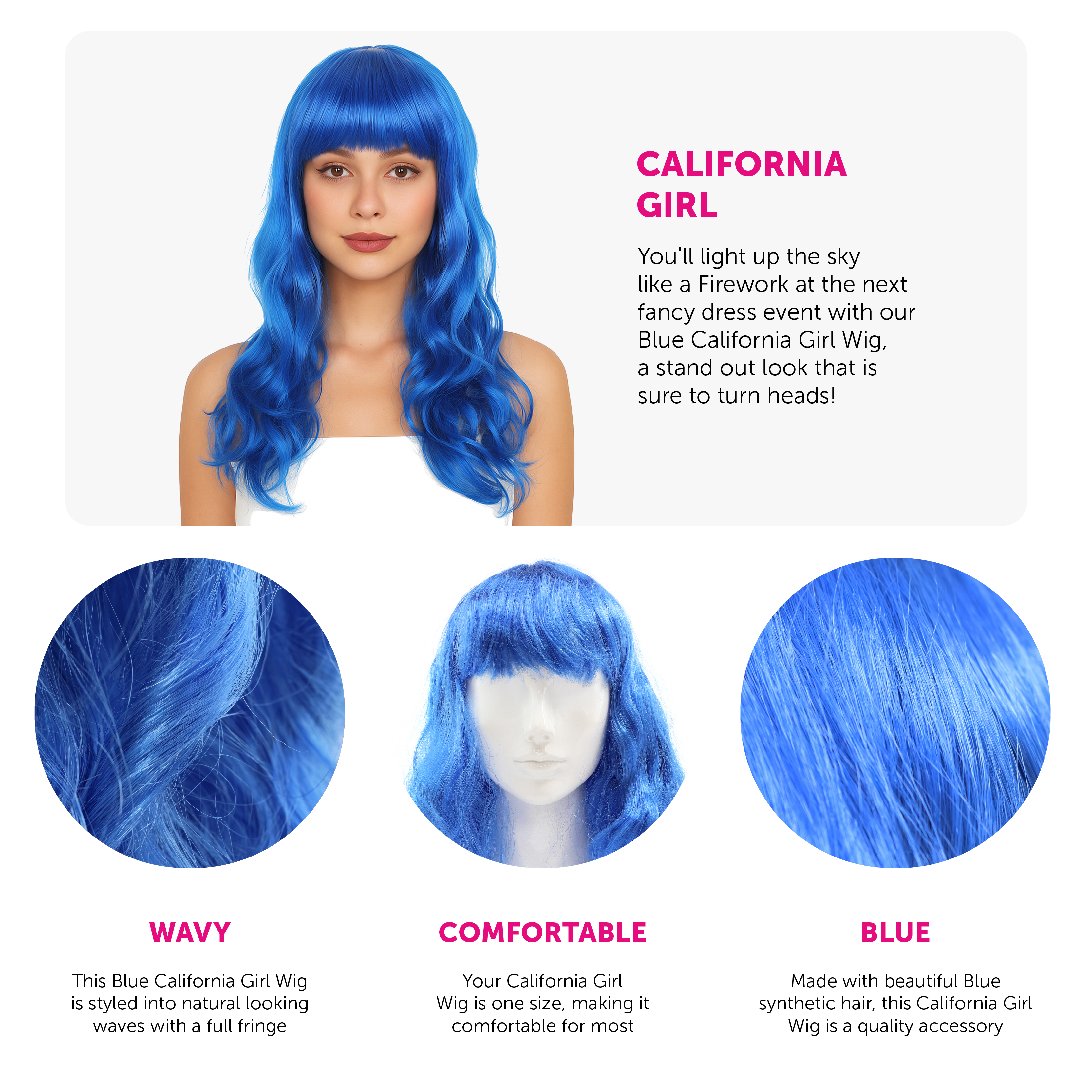 BLUE CALIFORNIA GIRL WIG: You'll light up the sky like a Firework at the next fancy dress event with our Blue California Girl Wig, a stand out look that is sure to turn heads!