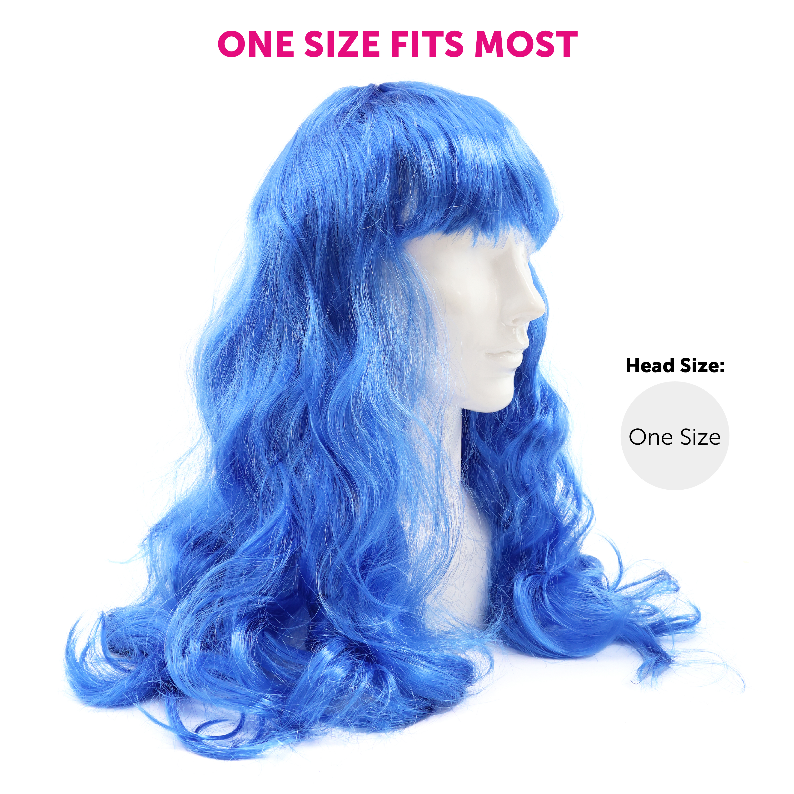 WIG DETAILS: This long, striking Blue Wig is designed to fit most adults comfortably, offering a soft and comfortable fit made from high-quality, durable fibres, the perfect Costume piece for music themed fancy dress events!