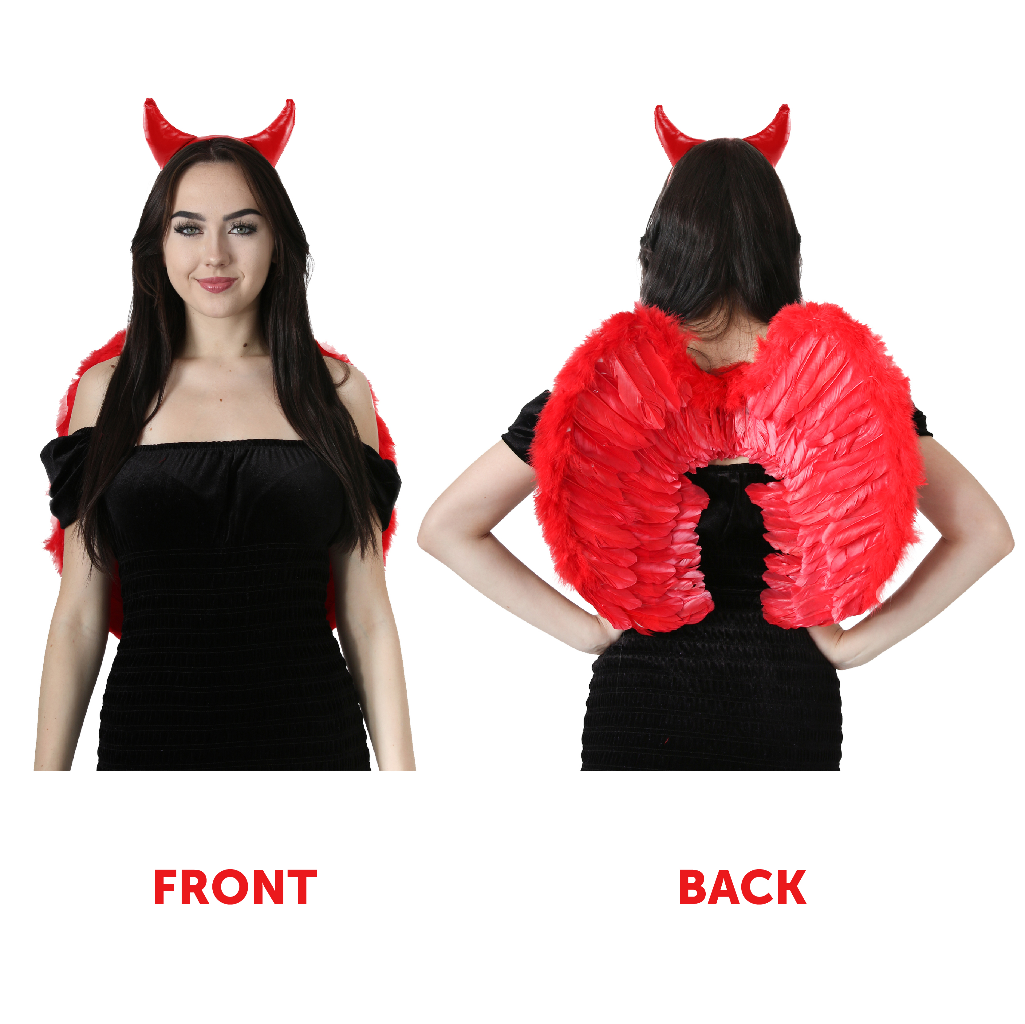 SET INCLUDES: This Devil Set includes a vibrant Red Headband with 2x matching Red Devil Horns attached to the top, and comfortable Red Devil Feather Wings, the perfect Set to act Devilish all night long!