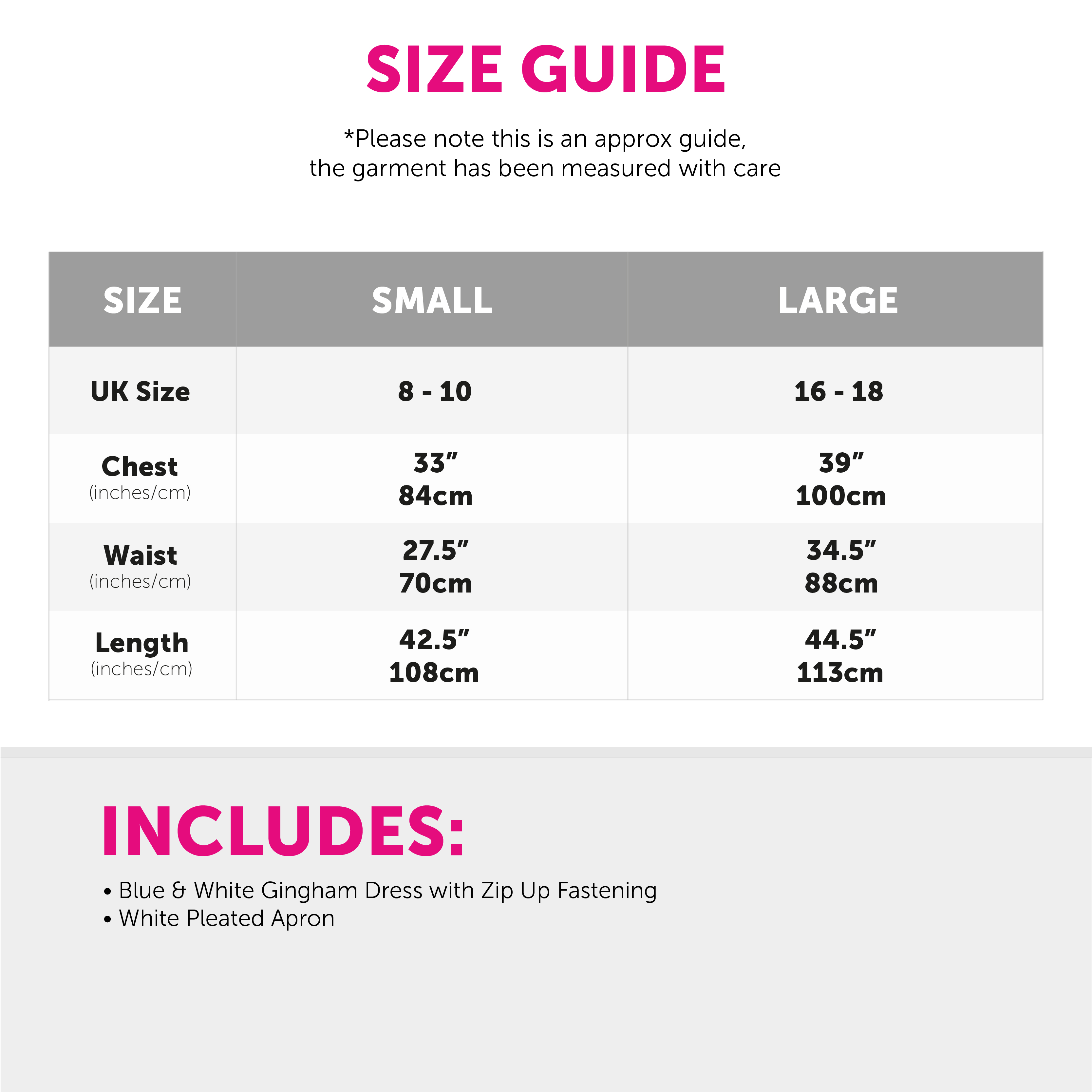 AVAILABLE IN MULTIPLE SIZES: This Ladies Kansas Girl Costume is available in different sizes; Small (UK 8 - 10) Chest 33" (84cm), Waist 27.5" (70cm), Length 42.5" (108cm) | Large (UK 16 - 18) Chest 39" (100cm), Waist 34.5" (88cm), Length 44.5" (113cm)
