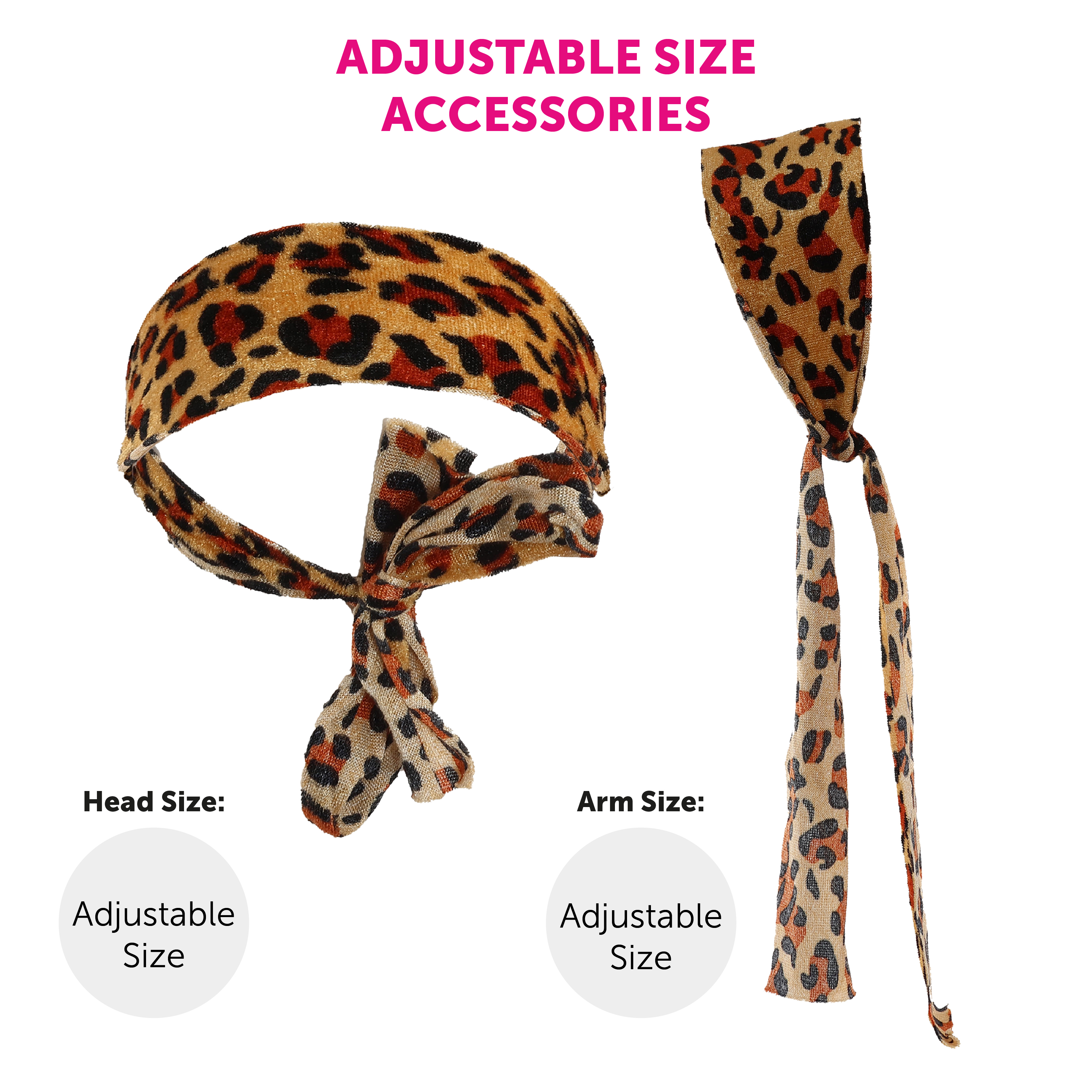 ADJUSTABLE ACCESSORIES: The Leopard Print Headband and matching Armband have a tie up design, meaning they can be adjusted to fit you perfectly!