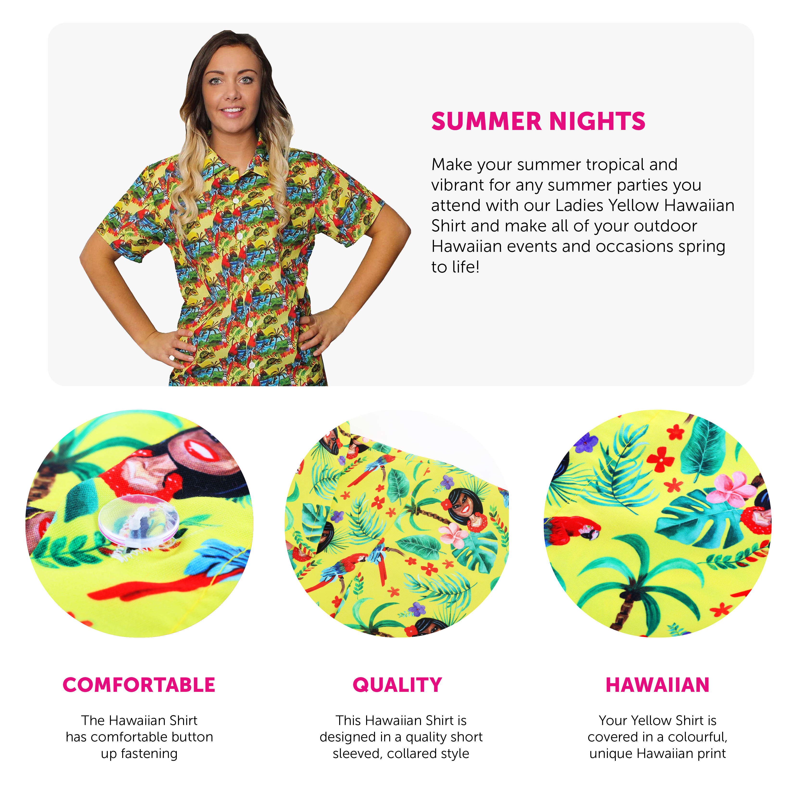 LADIES YELLOW HAWAIIAN SHIRT: Make your summer tropical and vibrant for any summer parties you attend with our Ladies Yellow Hawaiian Shirt and make all of your outdoor Hawaiian events and occasions spring to life!