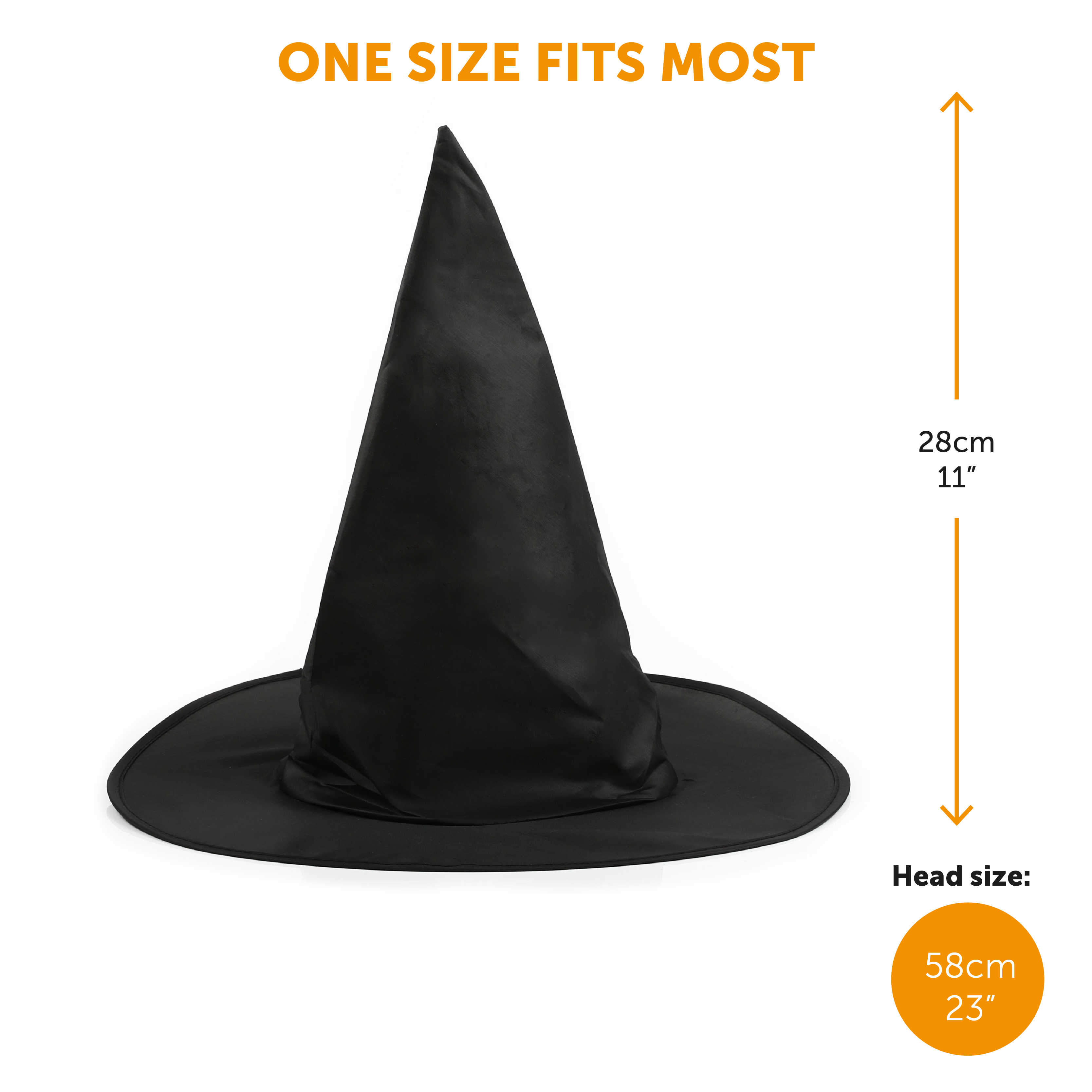 GREAT HEAD SIZE: Your Basic Black Witches Hat is a great size, fitting anyone with a head size up 58cm (23"), a great addition to your look!