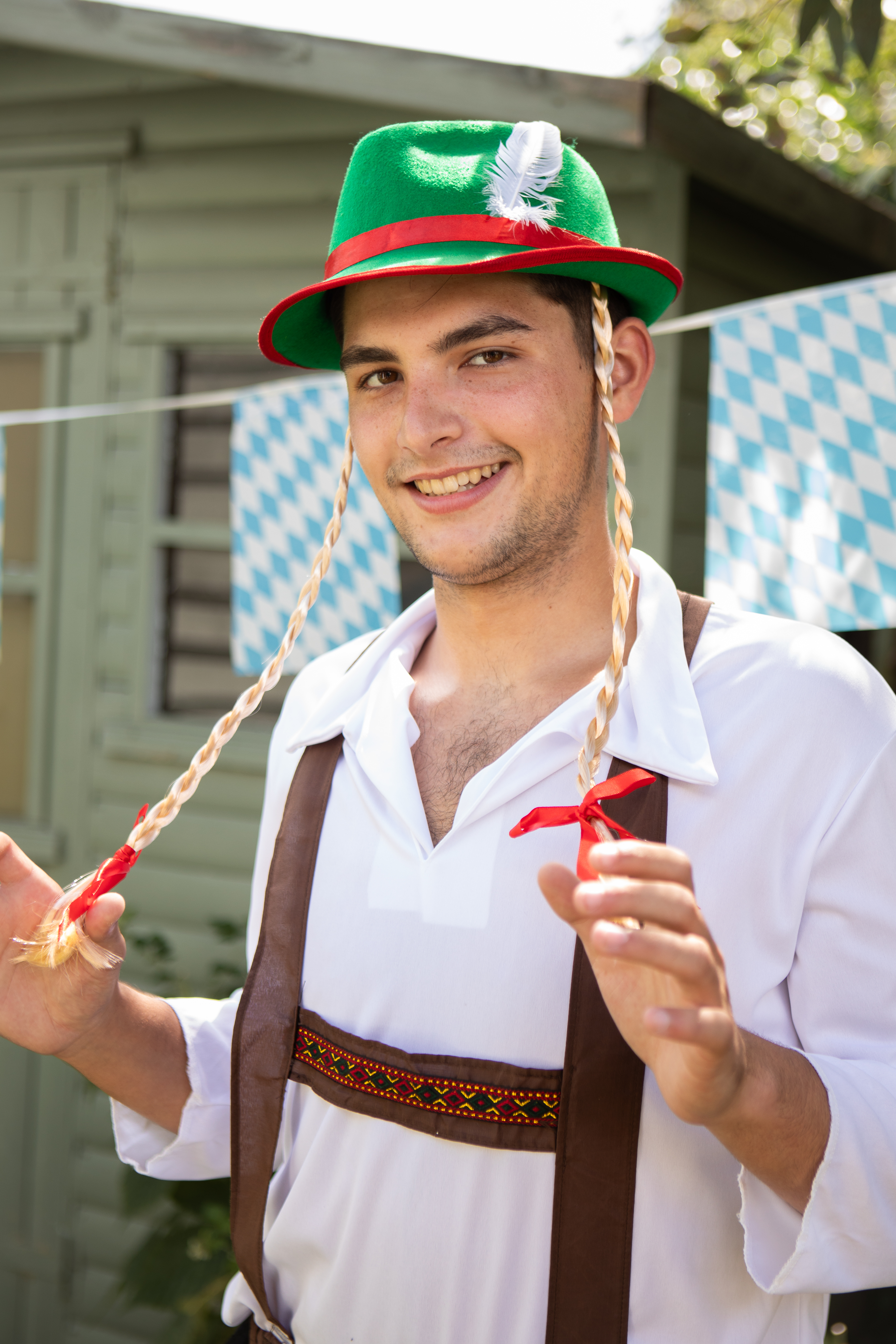 Green Bavarian Hat and Red Bow Plaits