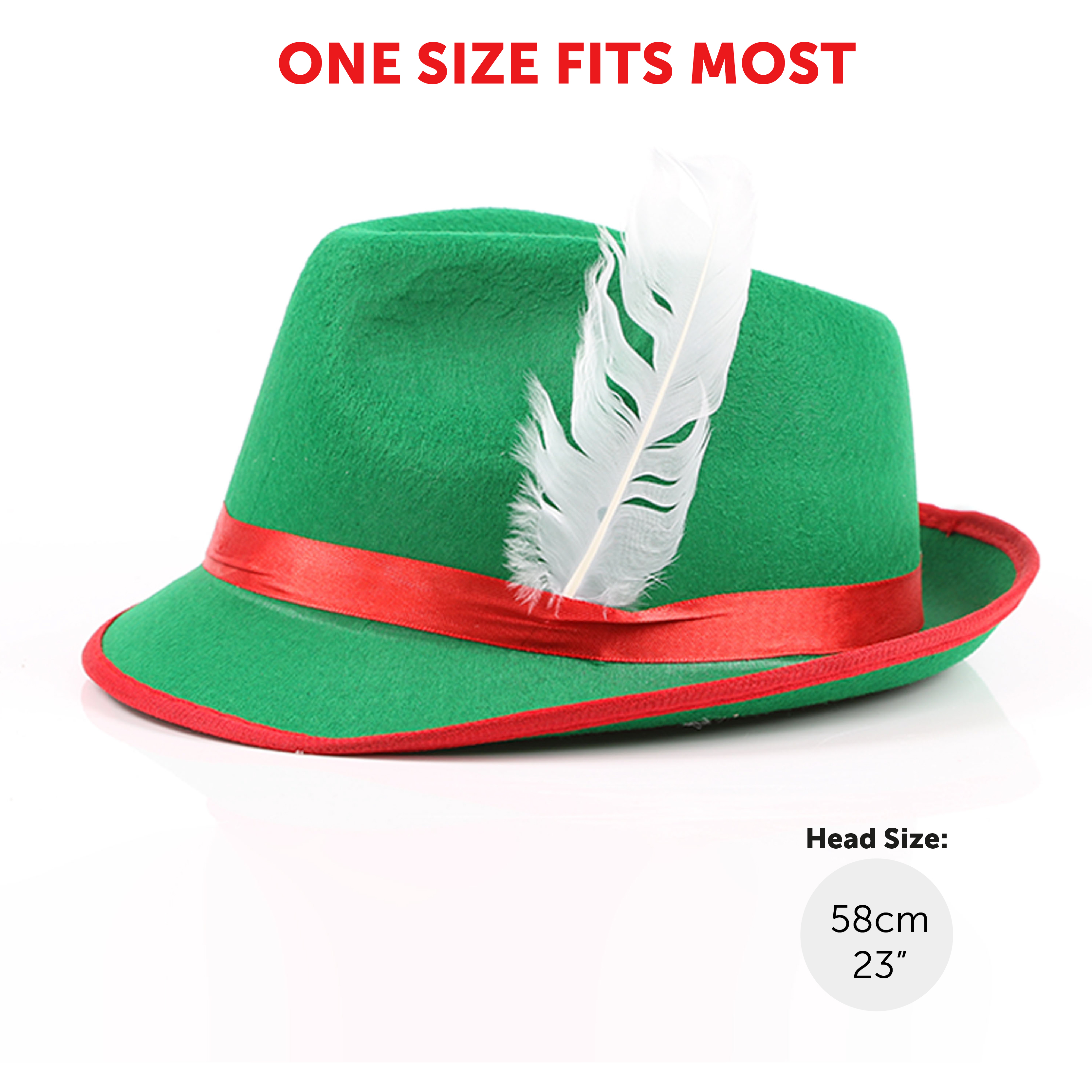 ONE SIZE FITS MOST: The Green Bavarian Hat is designed to fit most Adults comfortably with a head size measuring up to 58cm (23")
