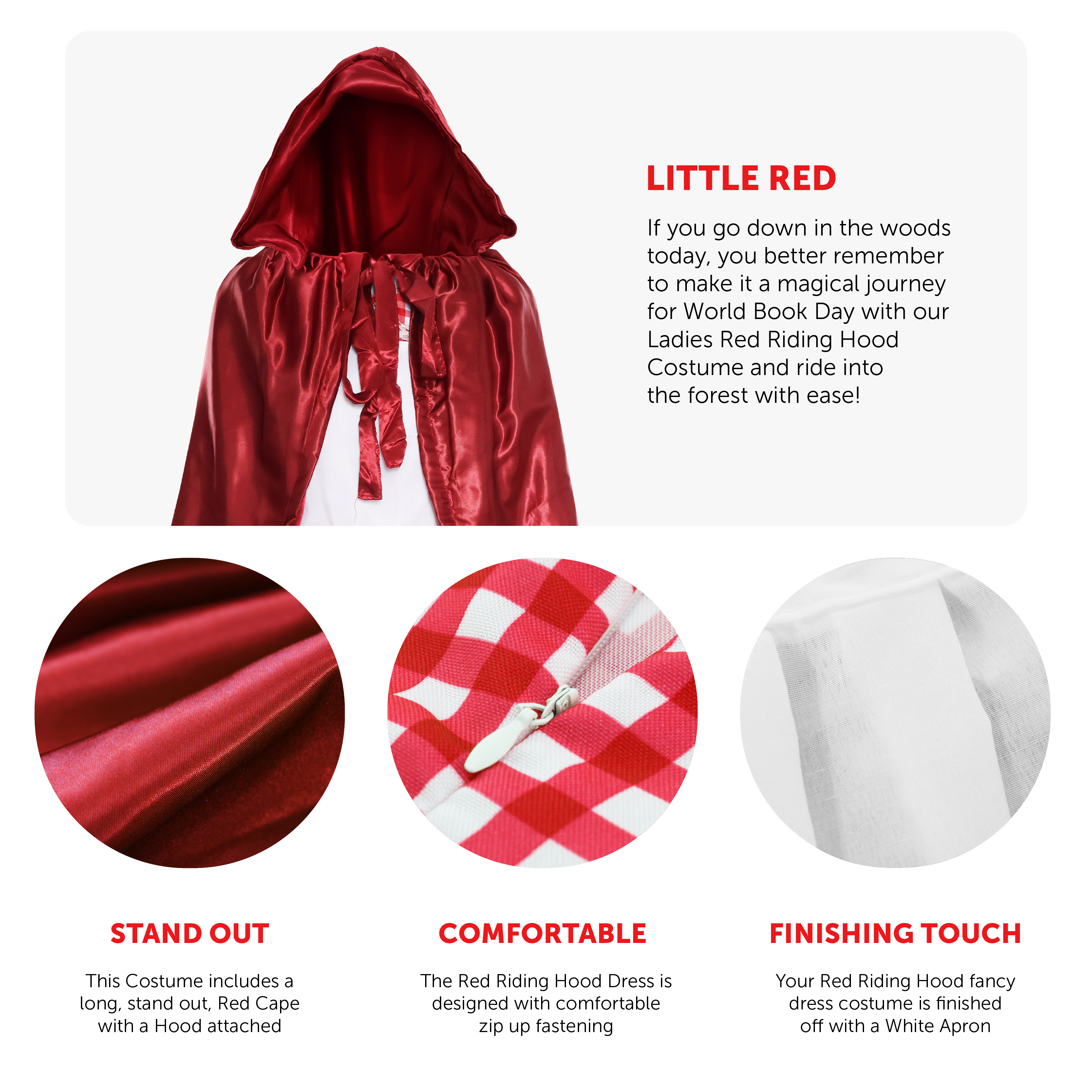 PERFECT FOR WORLD BOOK DAY FANCY DRESS: Whether you’re finishing off your favourite Costume for World Book Day, or any other fancy dress event coming up, make sure you wear our Ladies Red Riding Hood Costume!