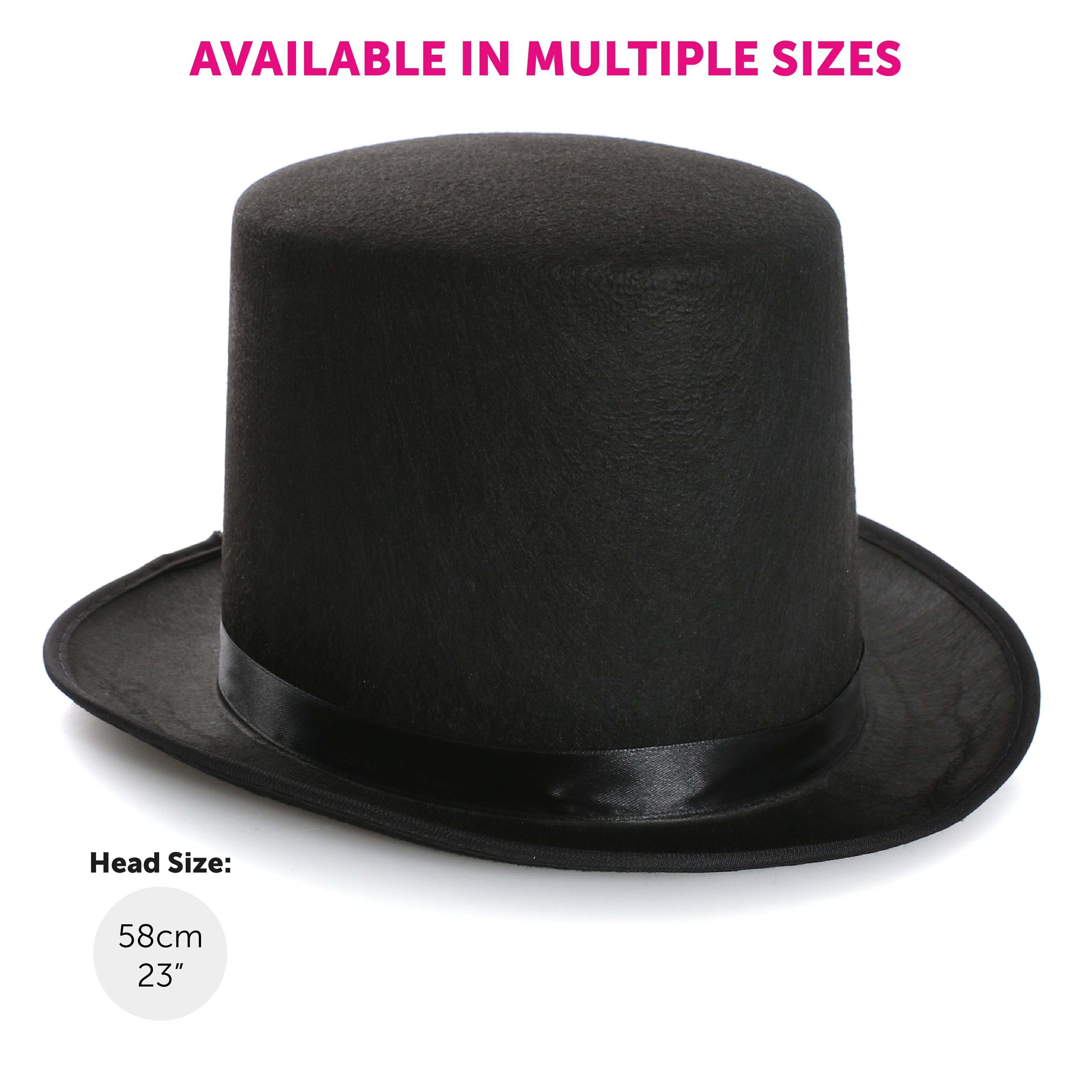 AVAILABLE IN MULTIPLE SIZES: The Victorian Gentleman Top Hat is available in 3 head sizes; 55cm (21.5"), 58cm (23"), 60cm (23.5")