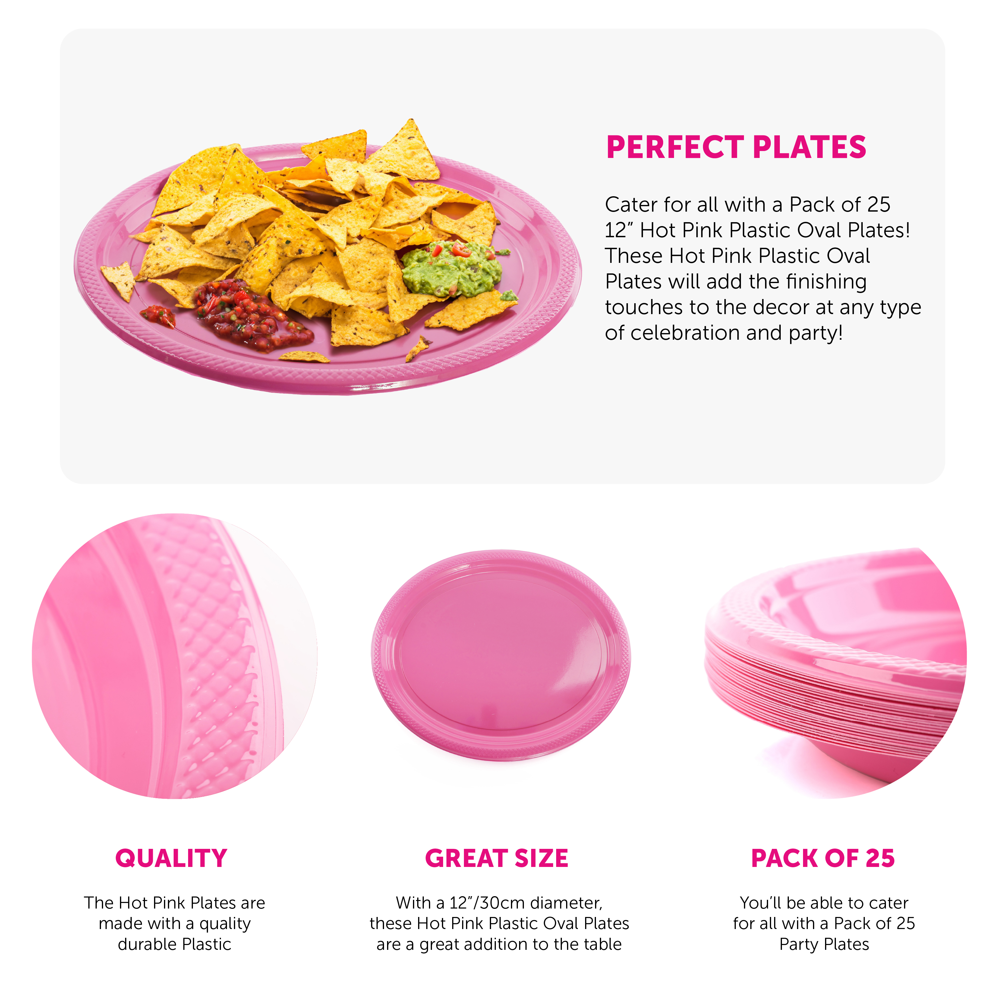 12" HOT PINK PLASTIC OVAL PLATES: Cater for all and add the finishing touches to the decor at any type of celebration, with a Pack of 25 12" Hot Pink Plastic Oval Plates!