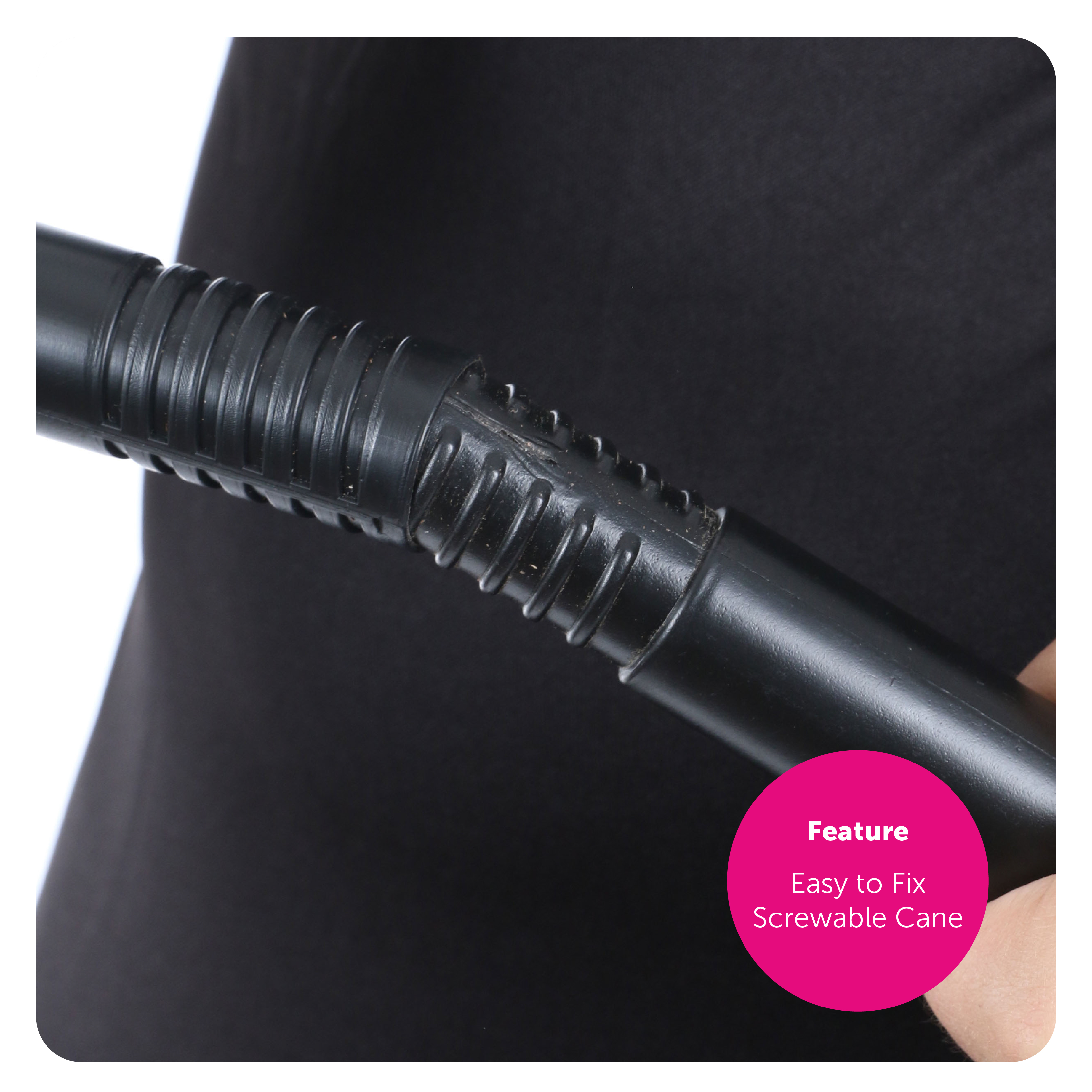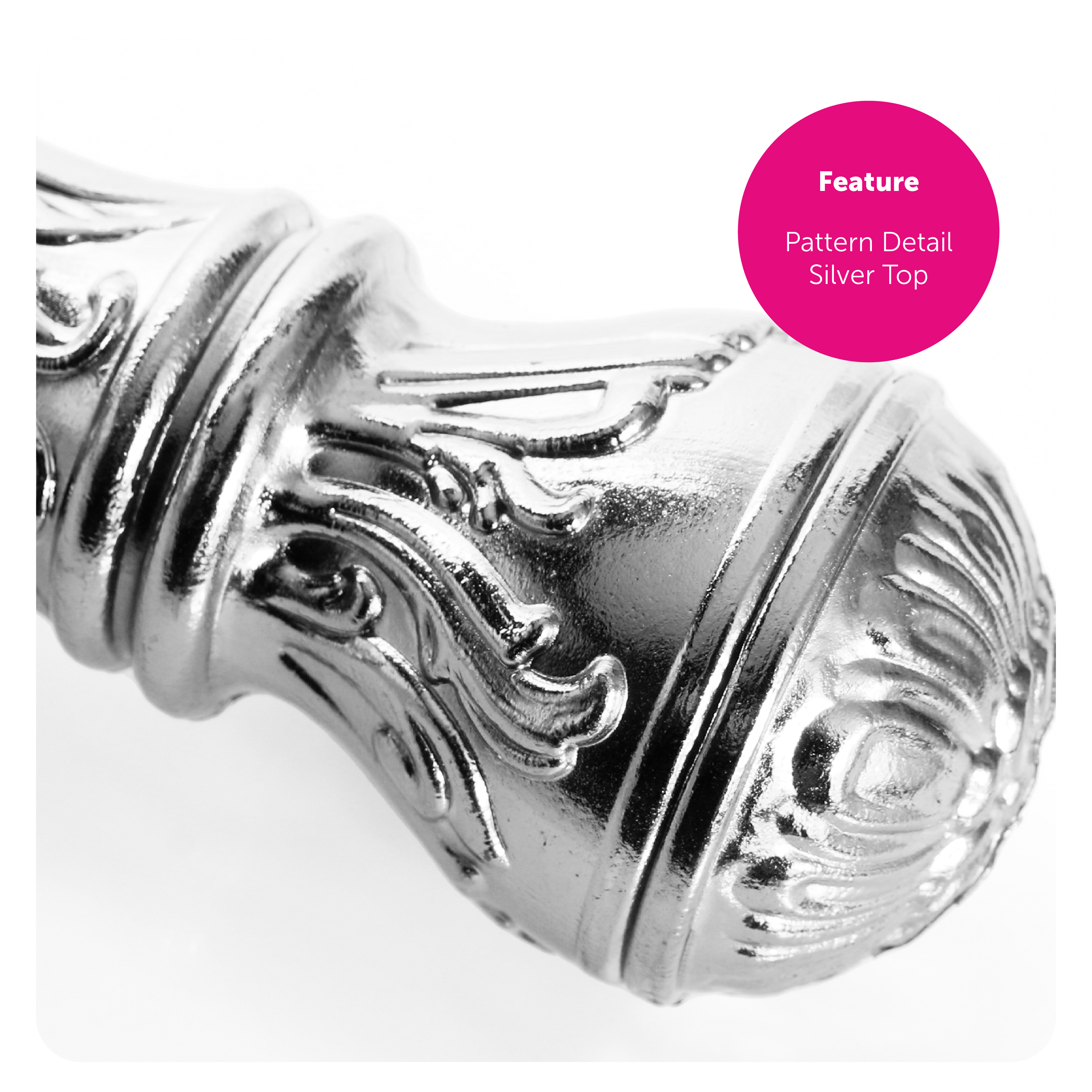 CANE DETAILS: The Dancing Cane is an easy to screw together black pole, that comes in three pieces, the top of the Cane is a metallic Silver handle covered in a patterned detail, the perfect accessory for your outfit!