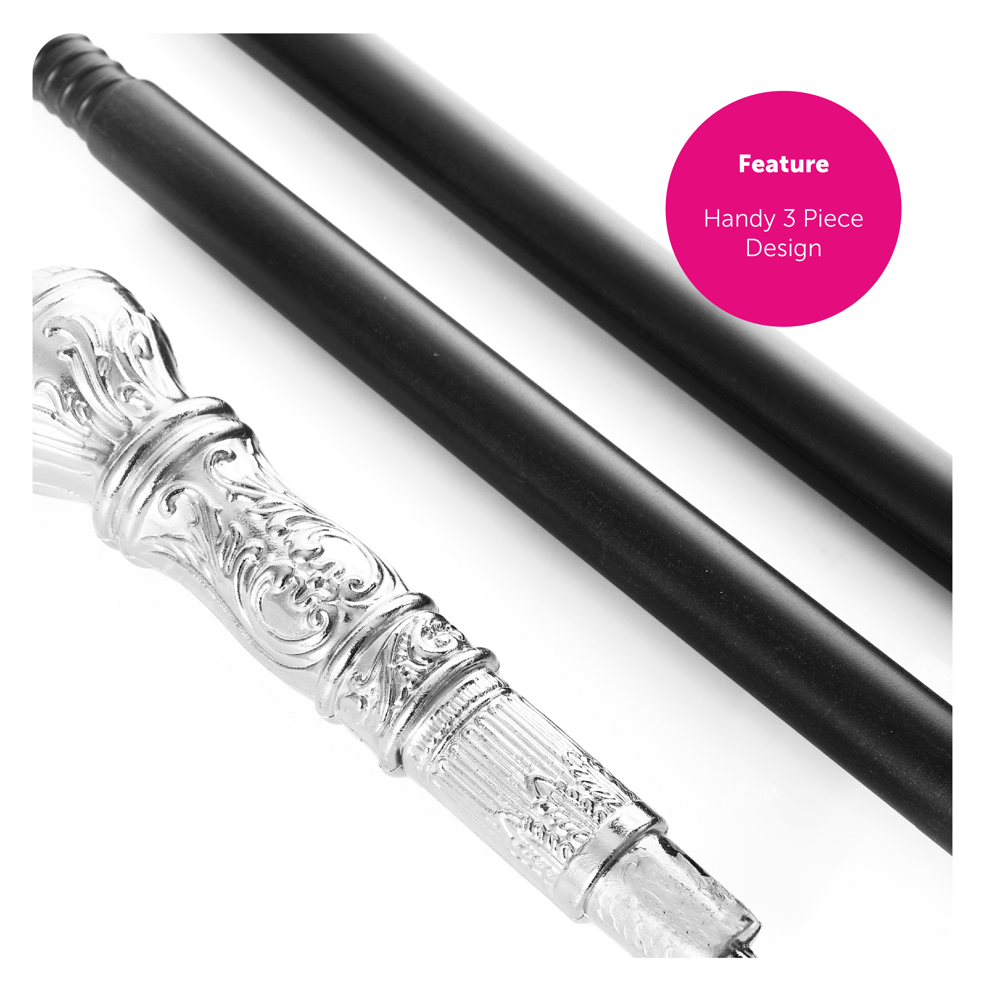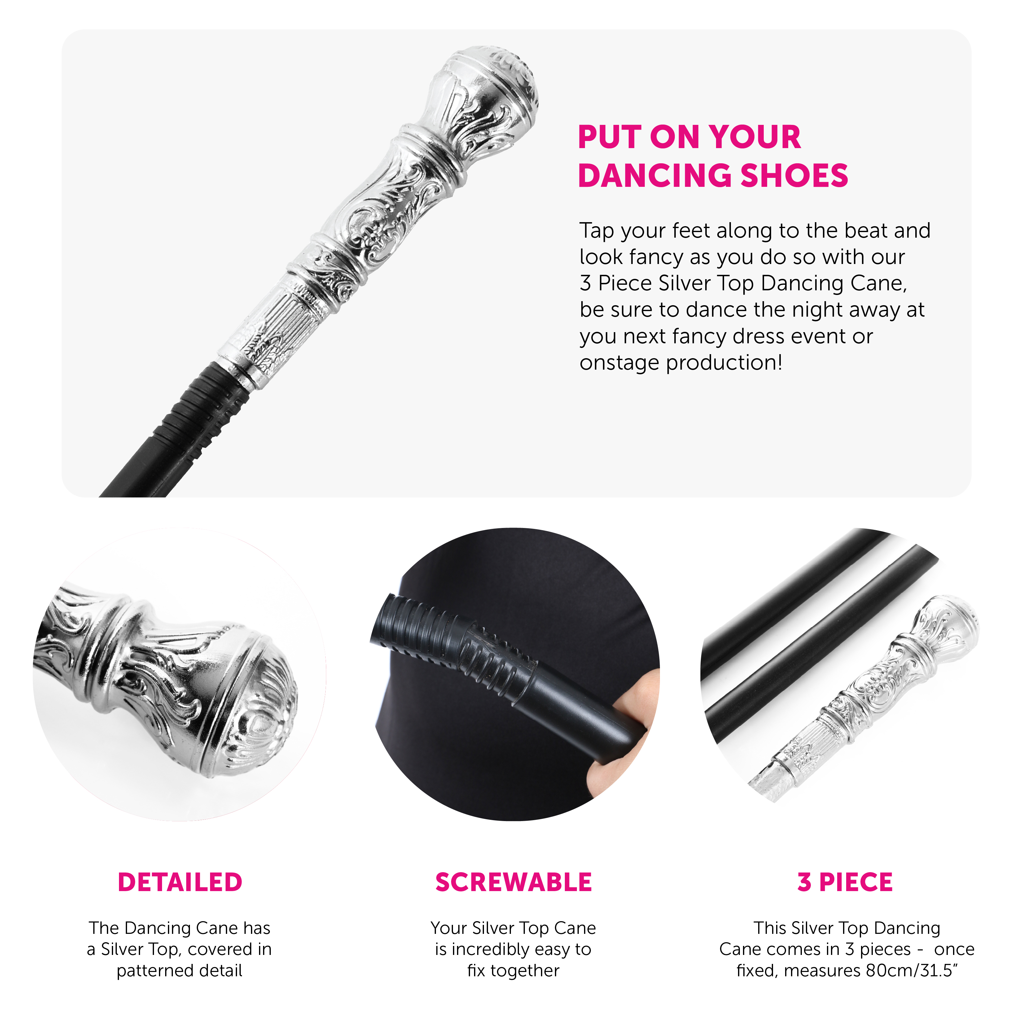 PERFECT FOR ANY FANCY DRESS: Whether you are taking part in an onstage Production or need a classy prop to finish off your fancy dress costume, look no further, our 3 Piece Silver Top Dancing Cane is just what you need!