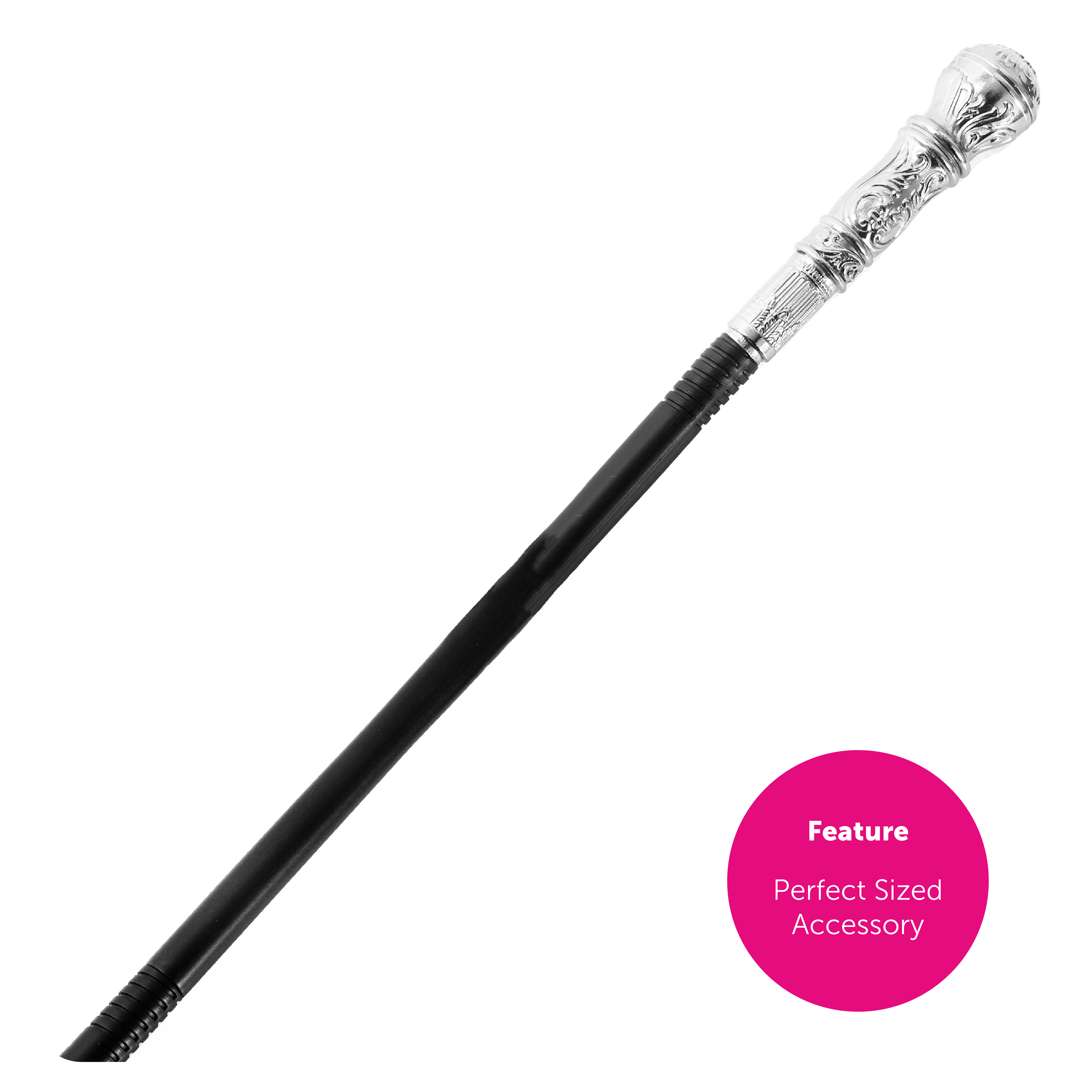 PERFECT SIZED PROP: The Silver Top Black Cane is a 3 piece accessory that screws together easily, and once fixed together measures a complete length of 80cm (31.5")