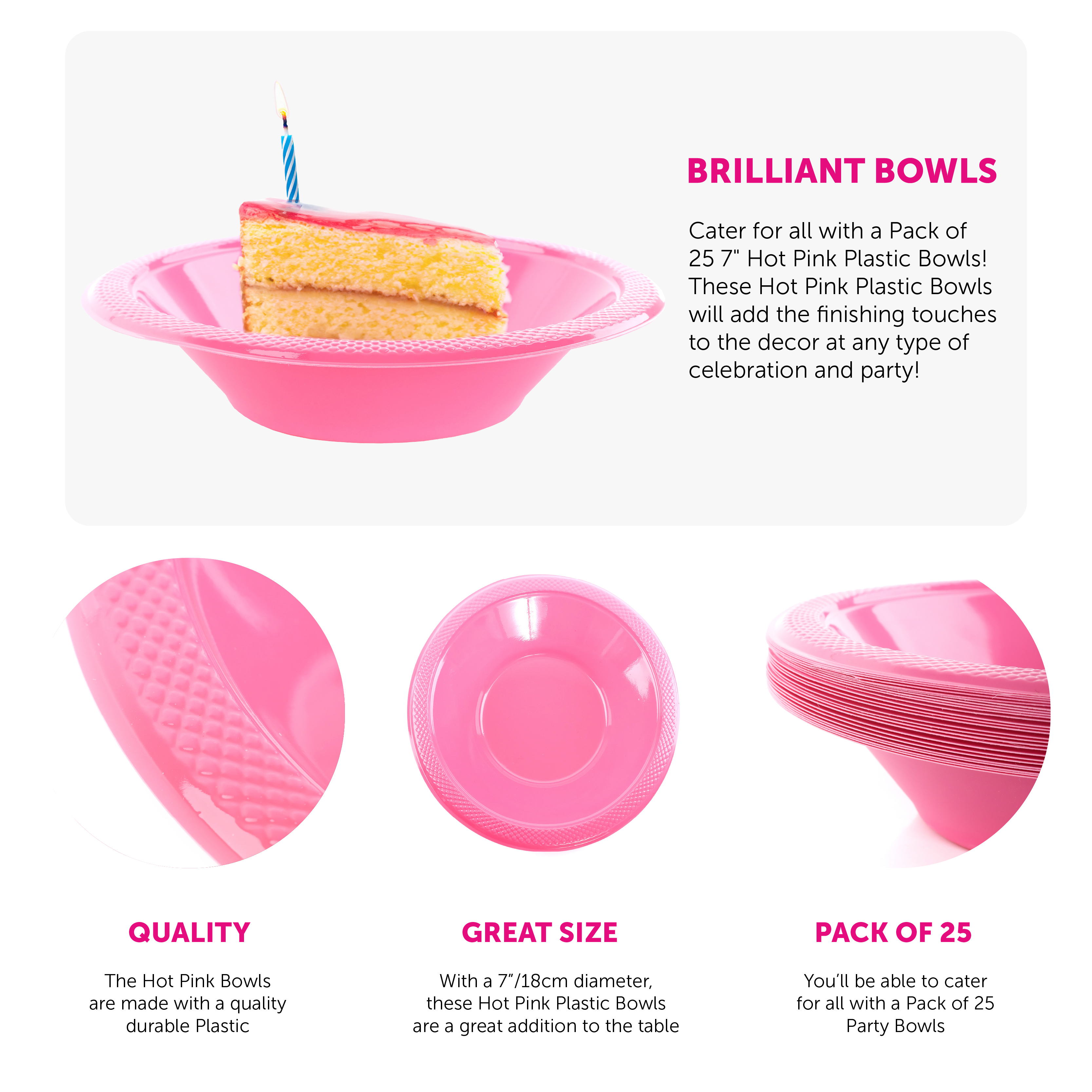 7" HOT PINK PLASTIC BOWLS: Cater for all and add the finishing touches to the decor at any type of celebration, with a Pack of 25 7" Hot Pink Plastic Bowls!