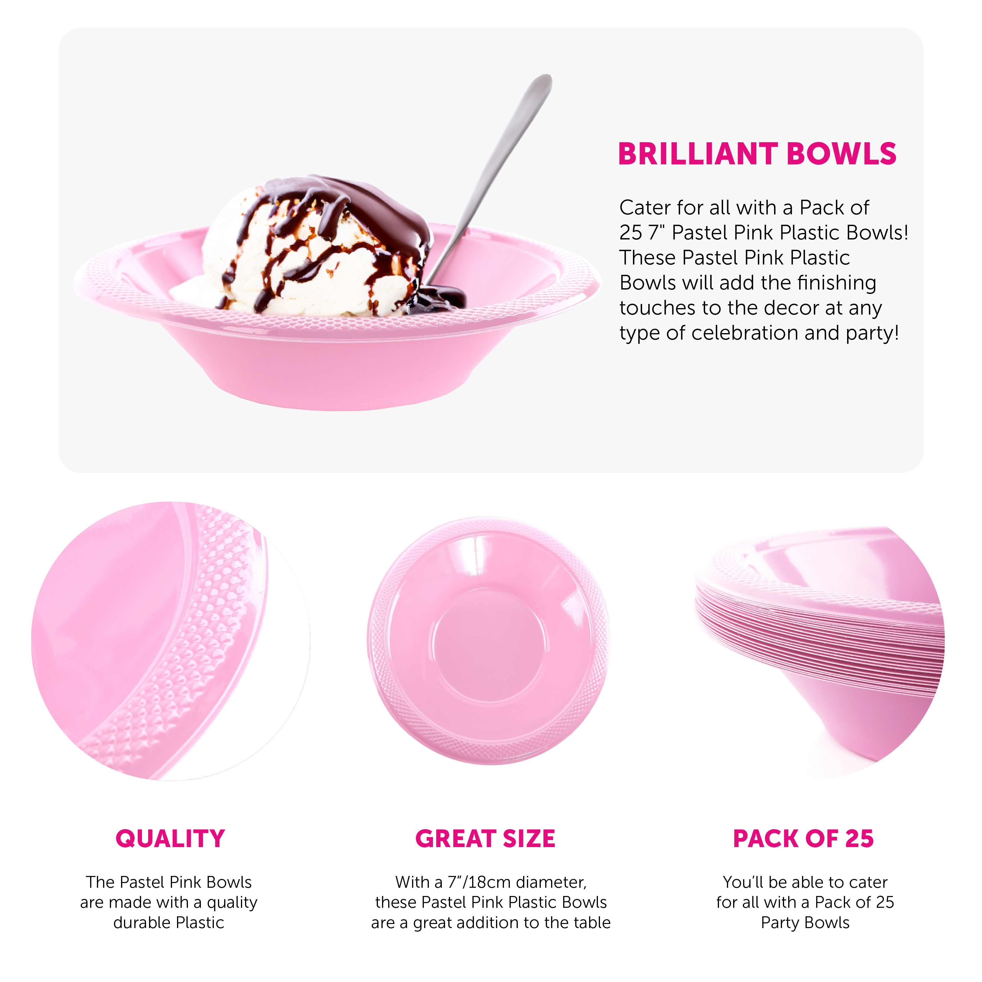 PERFECT FOR ANY PARTY: Whether you're planning a Buffet, BBQ or decorating a Party, then add the finishing touches to your decor with these 7" Pastel Pink Plastic Bowls!