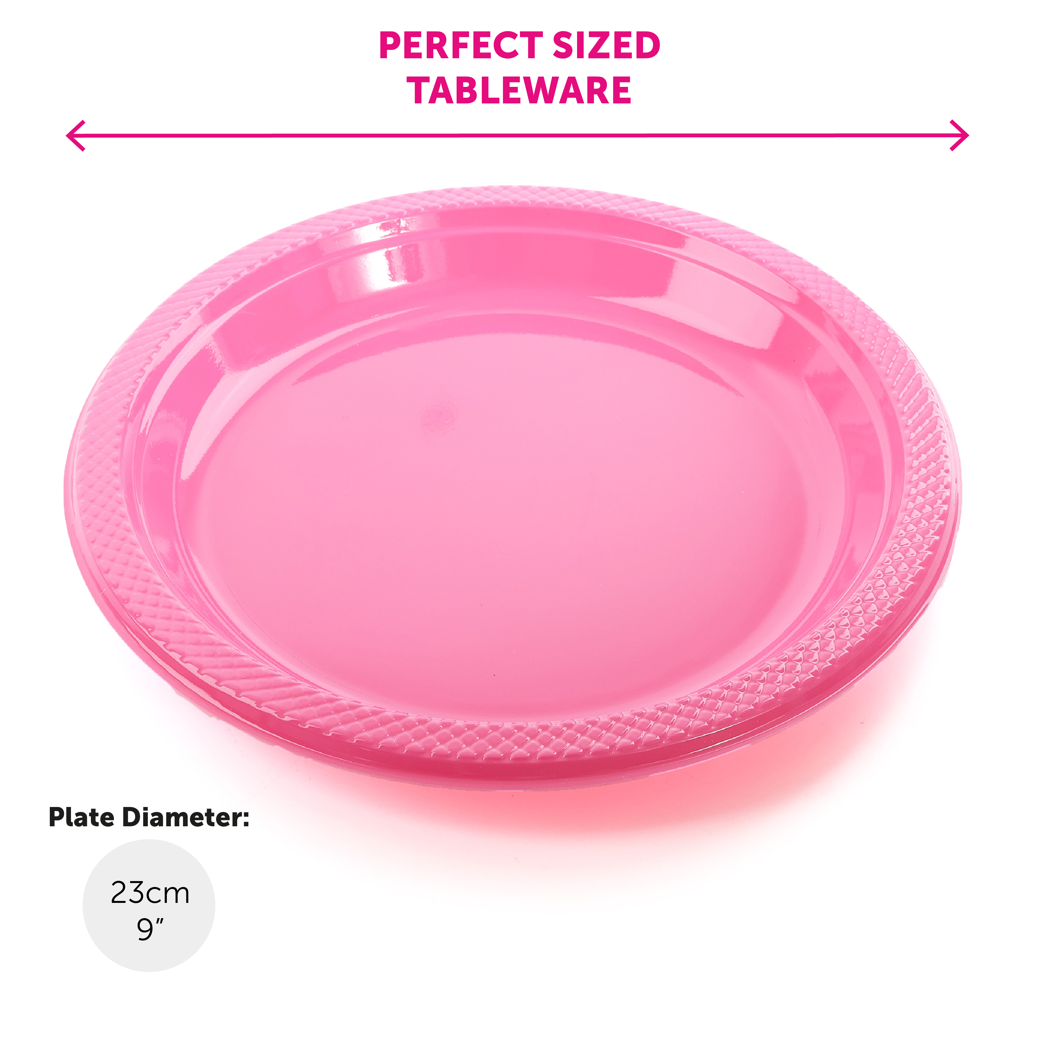 GREAT SIZE: The Hot Pink Plates have a diameter measuring 9" (23cm), a great size for decorating the table at any type of celebration!