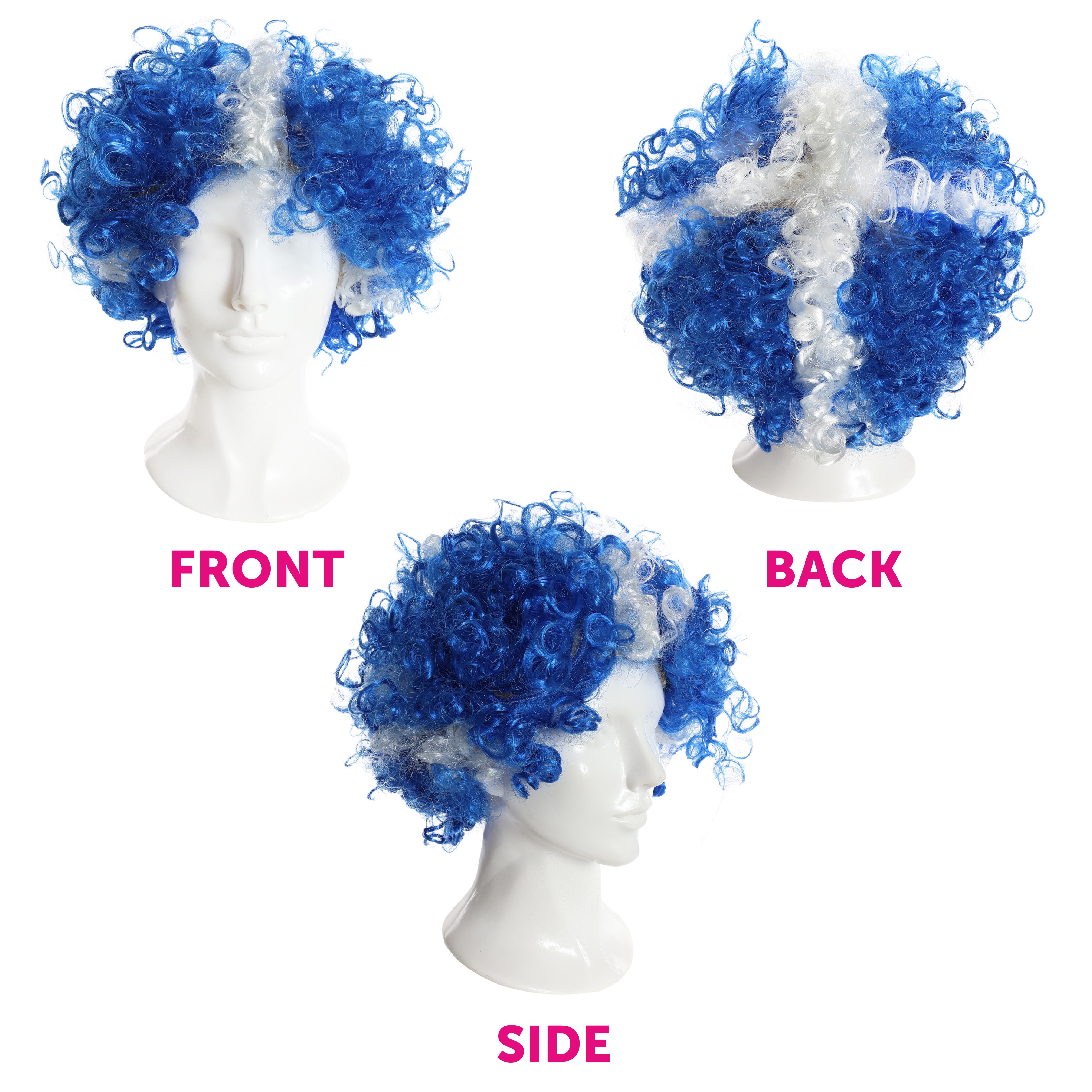 Show your support in fun, bold style with this Scottish flag curly afro wig.