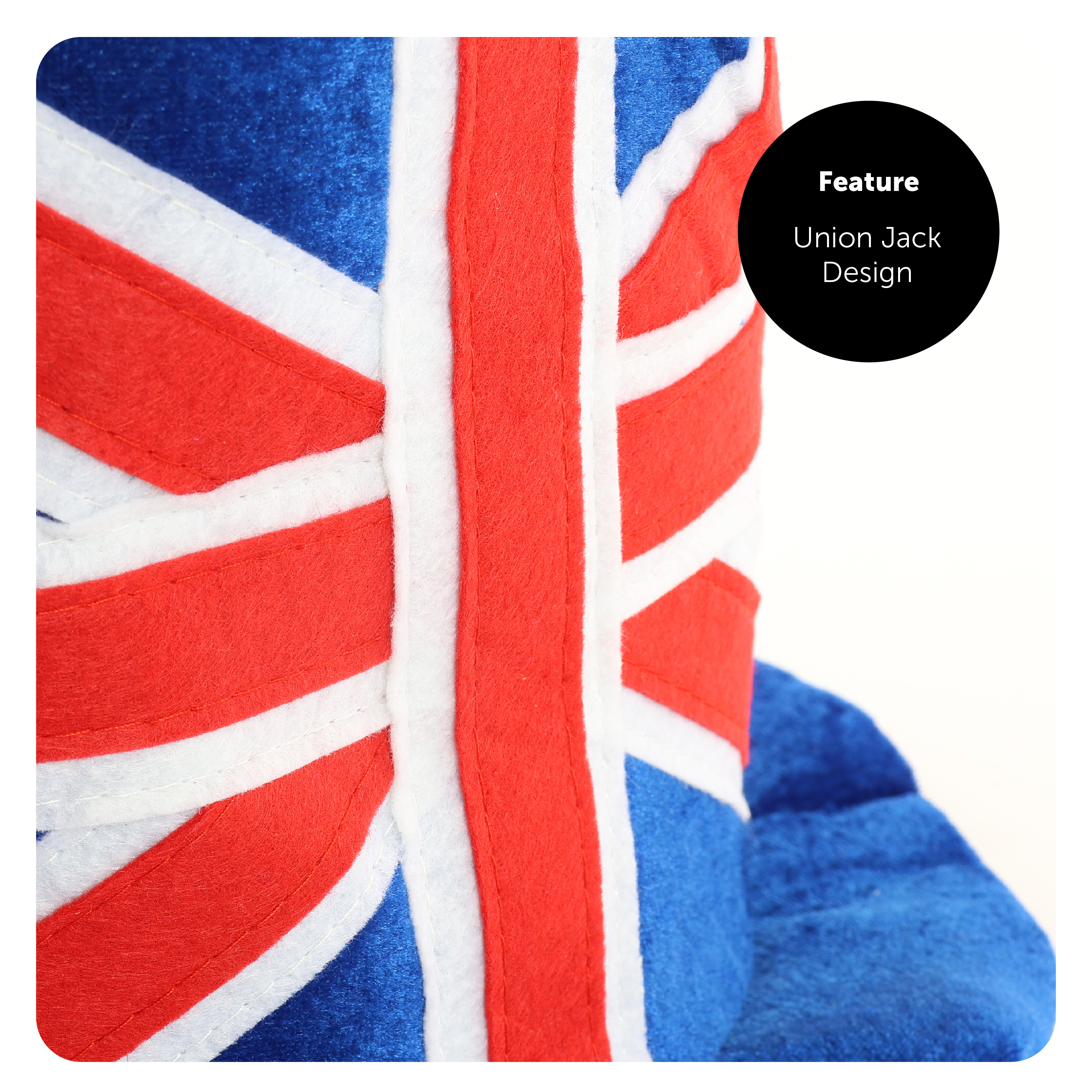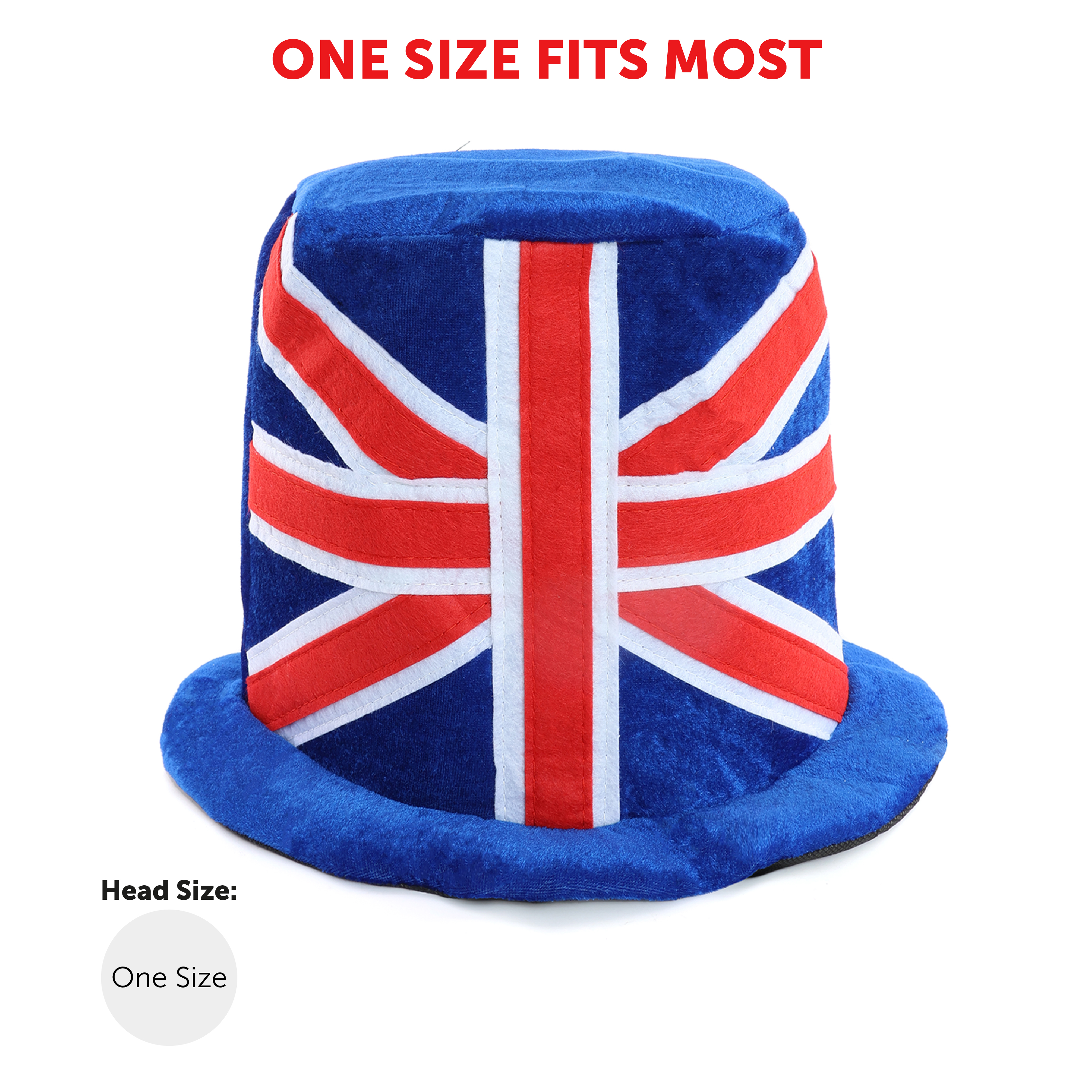 ONE SIZE TOP HAT: The Soft Union Jack Top Hat is designed to be one size fits most, allowing everyone to wear it comfortably at any British event!