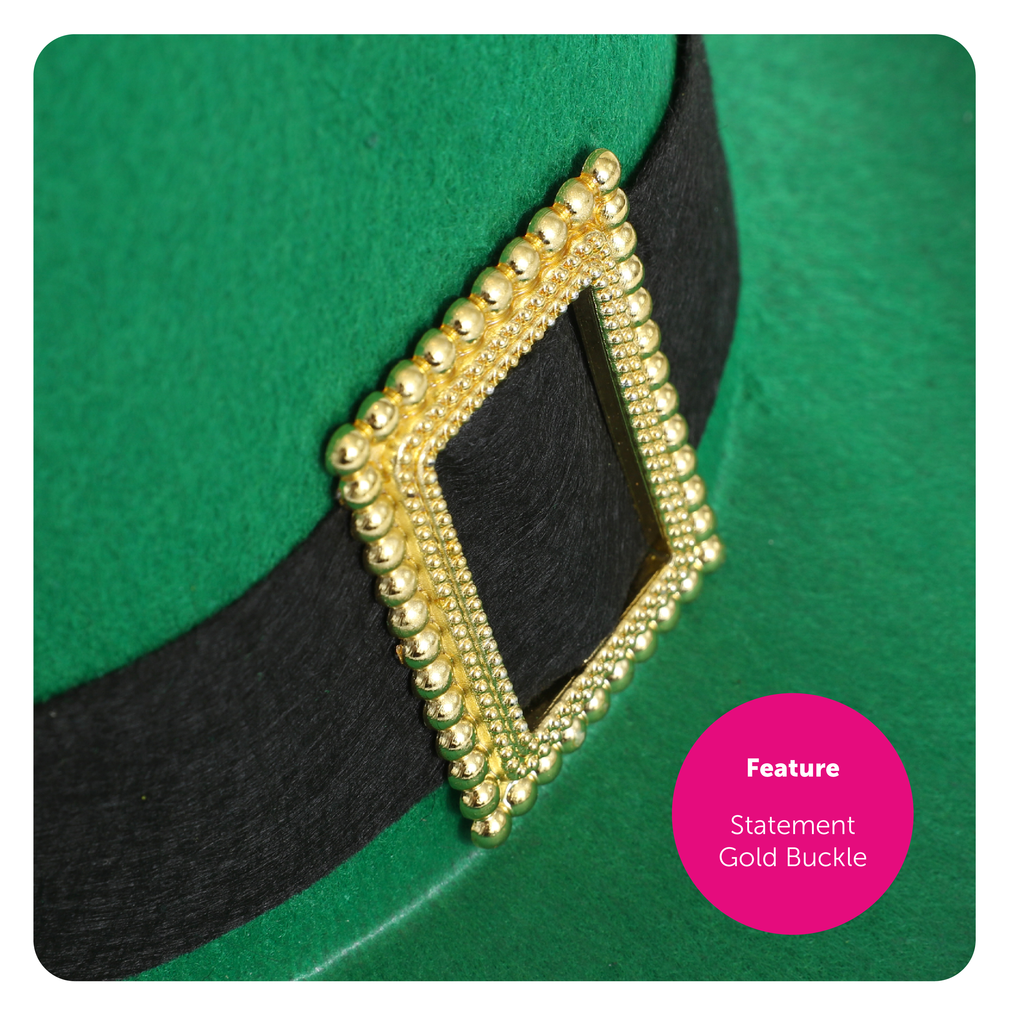 ONE SIZE FITS MOST: Your Irish Buckle Top Hat is suitable for most Adults to wear comfortably with a head size of up to 58cm (23"), the perfect sized Hat to wear at any Irish event!