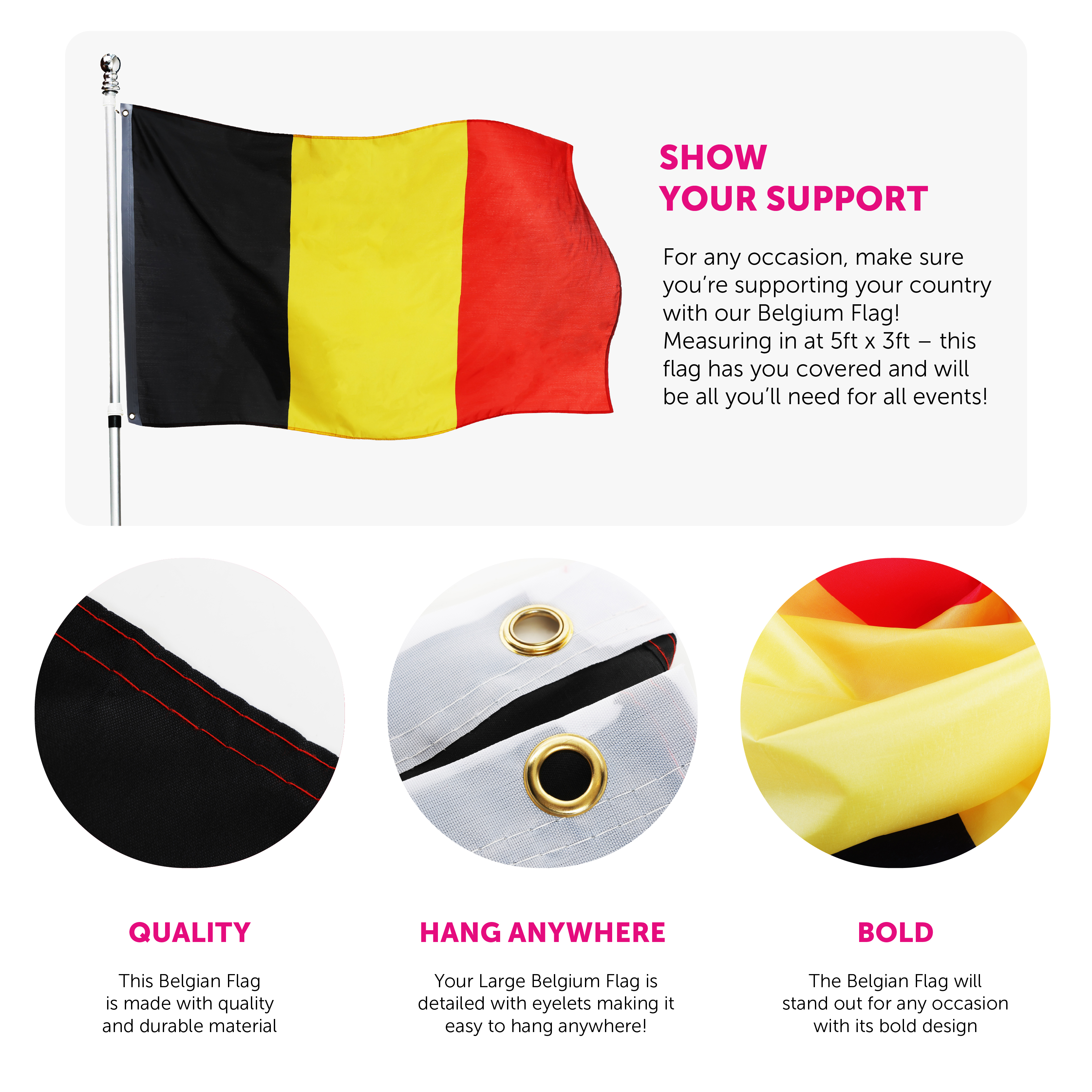 PERFECT FOR ANY BELGIAN EVENT: For any event or occasion, make sure you're picking up a 5ft x 3ft Belgium Flag for a day of support and celebration alongside family and friends!