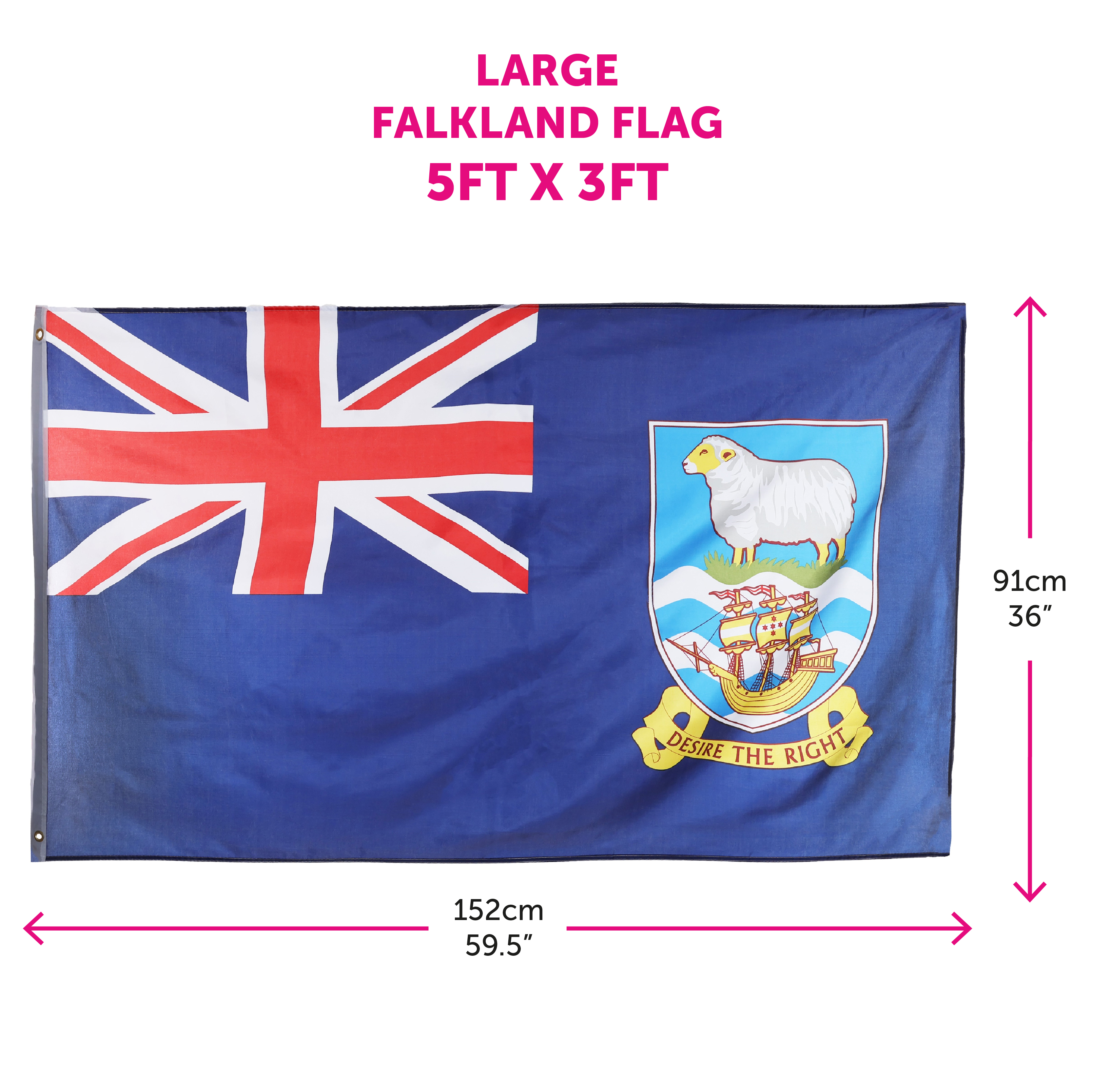 LARGE 5FT X 3FT FALKLAND FLAG: For any occasion, make sure you’re using our Falkland Flag to show your support! Measuring in at 5ft x 3ft – this flag has you covered and will be all you’ll need for all events!
