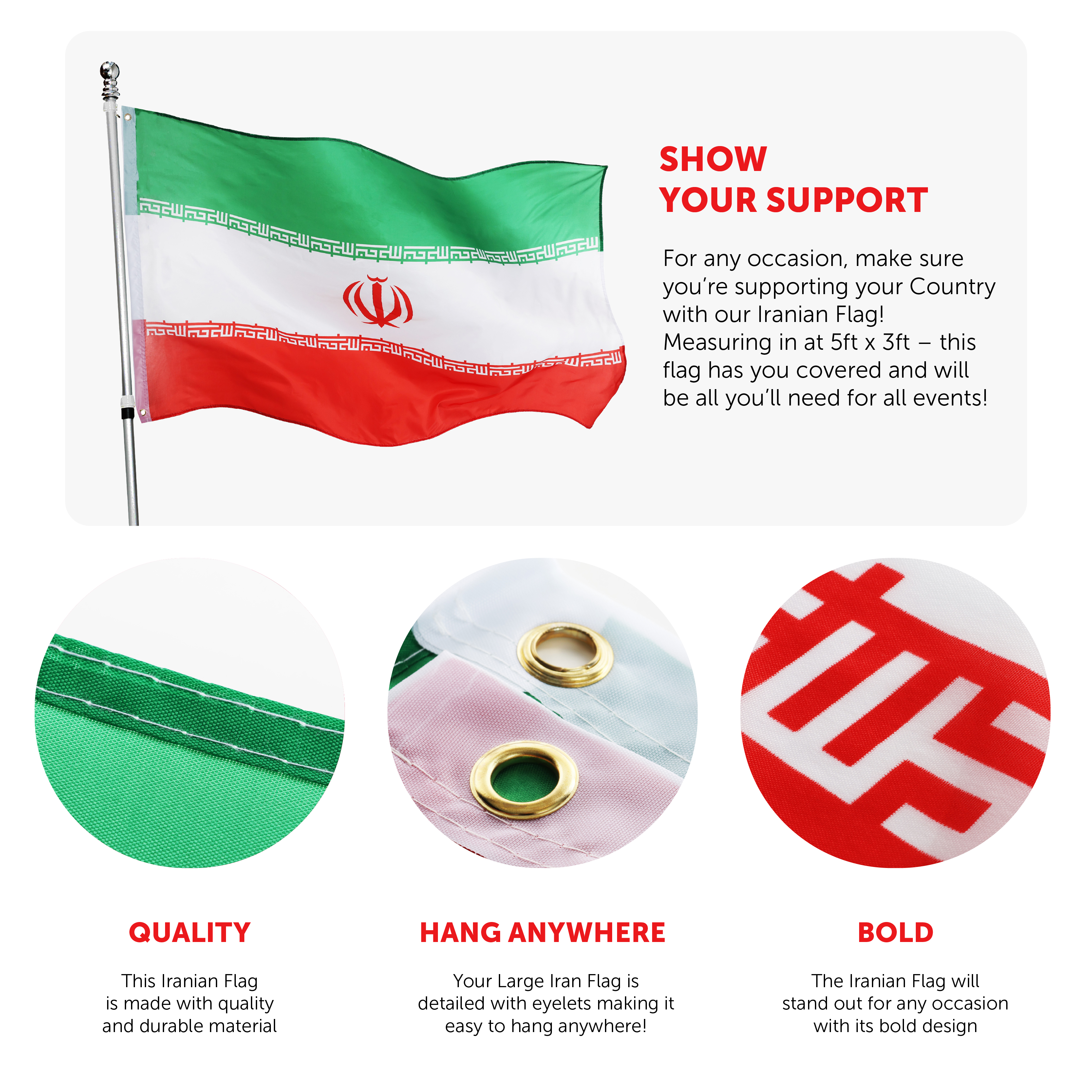 PERFECT FOR ANY IRANIAN EVENT: For any event or occasion, make sure you're picking up a 5ft x 3ft Iran Flag for a day of support and celebration alongside family and friends!