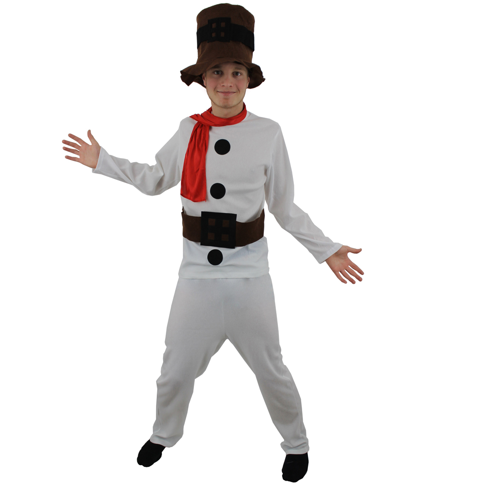 Everyone loves building Snowmen so why not go ahead and dress up as one. This complete costume is a great budget choice and one that will certainly not make the party go cold. Included is Long sleeved white top with added details, matching white trousers, lightweight red scarf and finally a brown hat with black buckle!