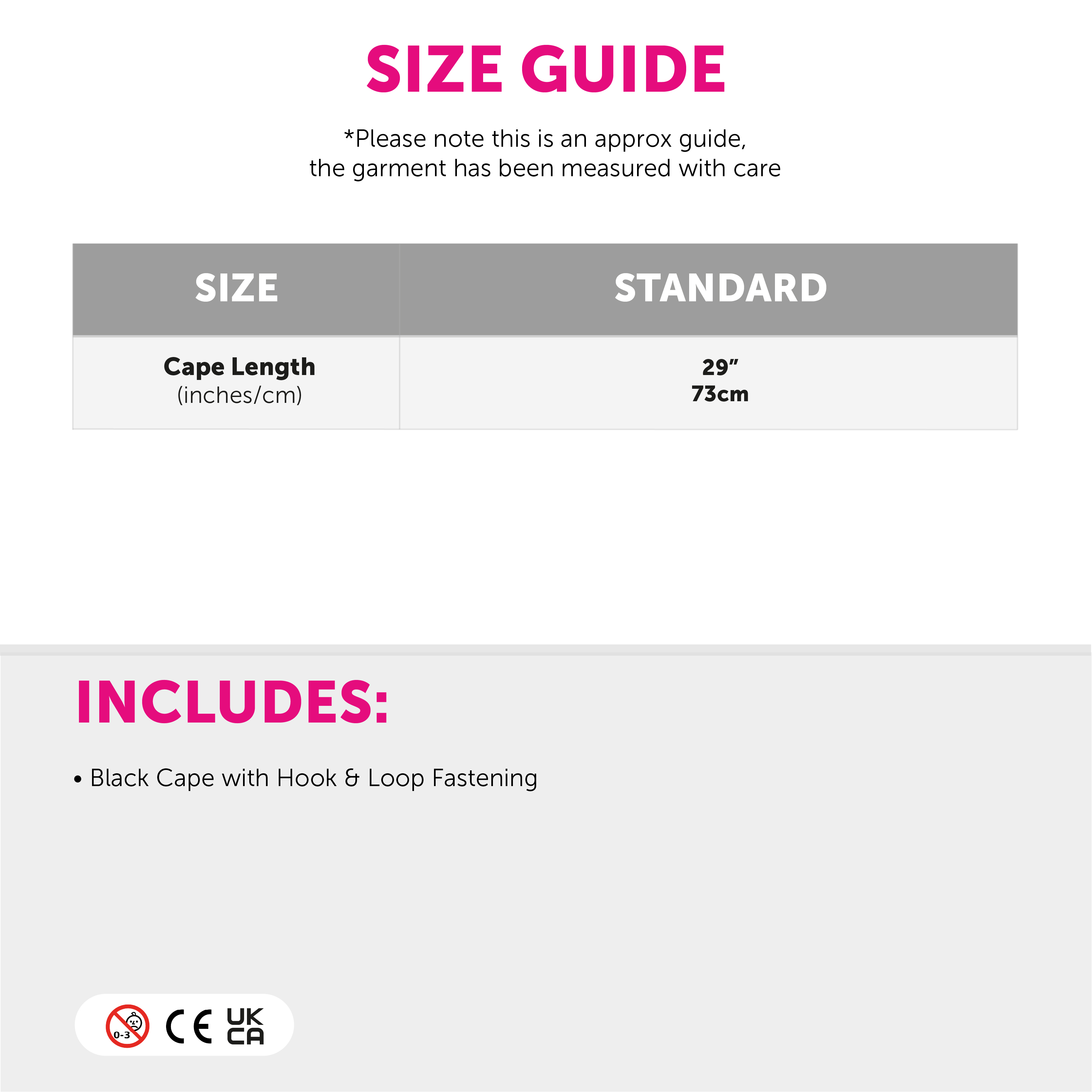 ONE SIZE FITS MOST: Your Child's Black Cape is only available in one size, measuring 29" (73cm) in length, you’ll feel comfortable and have no issue saving the day!