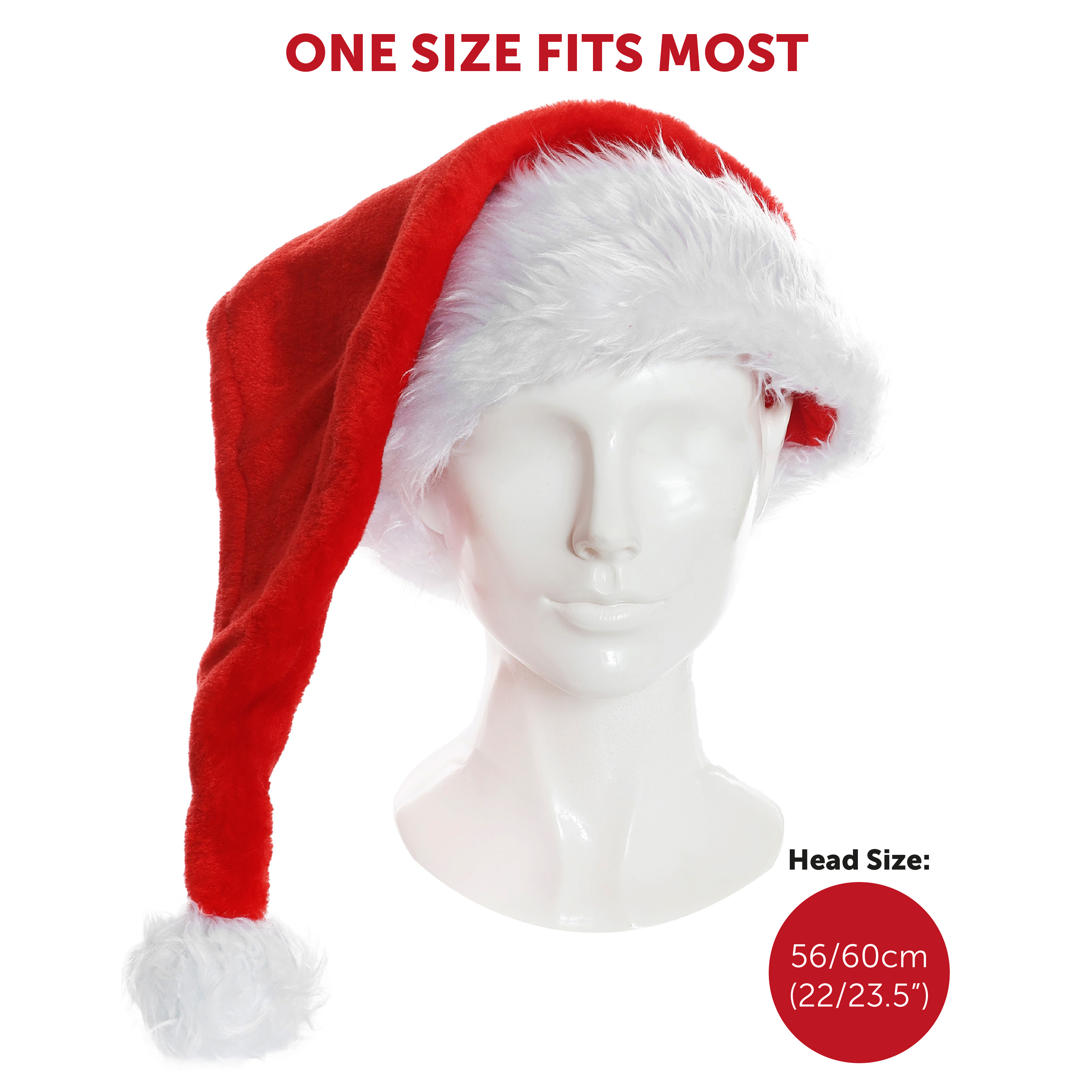 AVAILABLE IN MULTIPLE PACKS: The Classic Plush Santa Hats are available in multiple sized packs for the perfect festive events! These Hats are available in Packs of 1, Packs of 3, Packs of 6, Packs of 12, Packs of 24 and Packs of 48!
