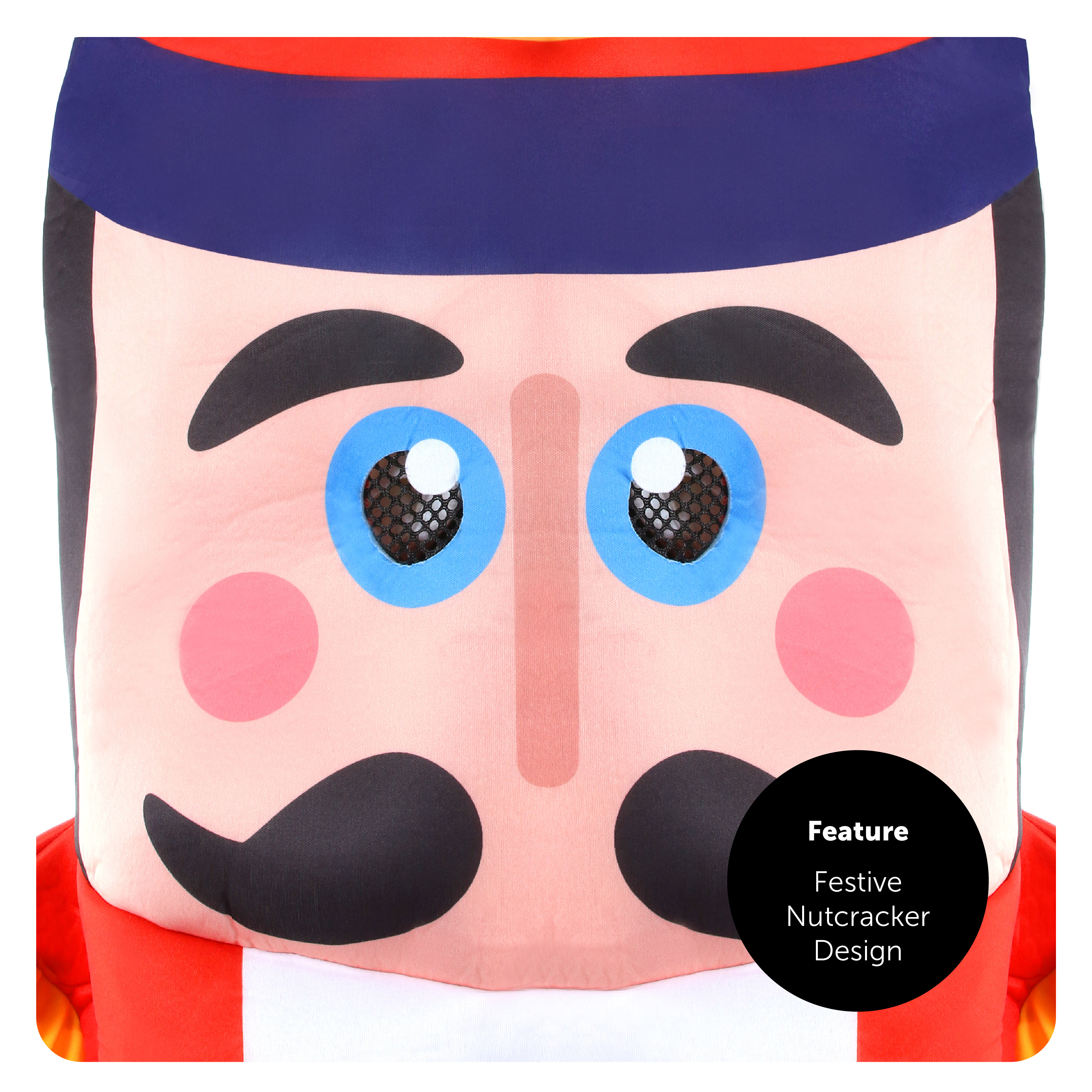 AVAILABLE IN ONE SIZE: Your Adults Christmas Nutcracker Mascot Costume is a one-size-fits-most costume, measuring 60” in length, and 52" in Width, this Christmas Nutcracker Mascot should be a perfect fit for most adults!