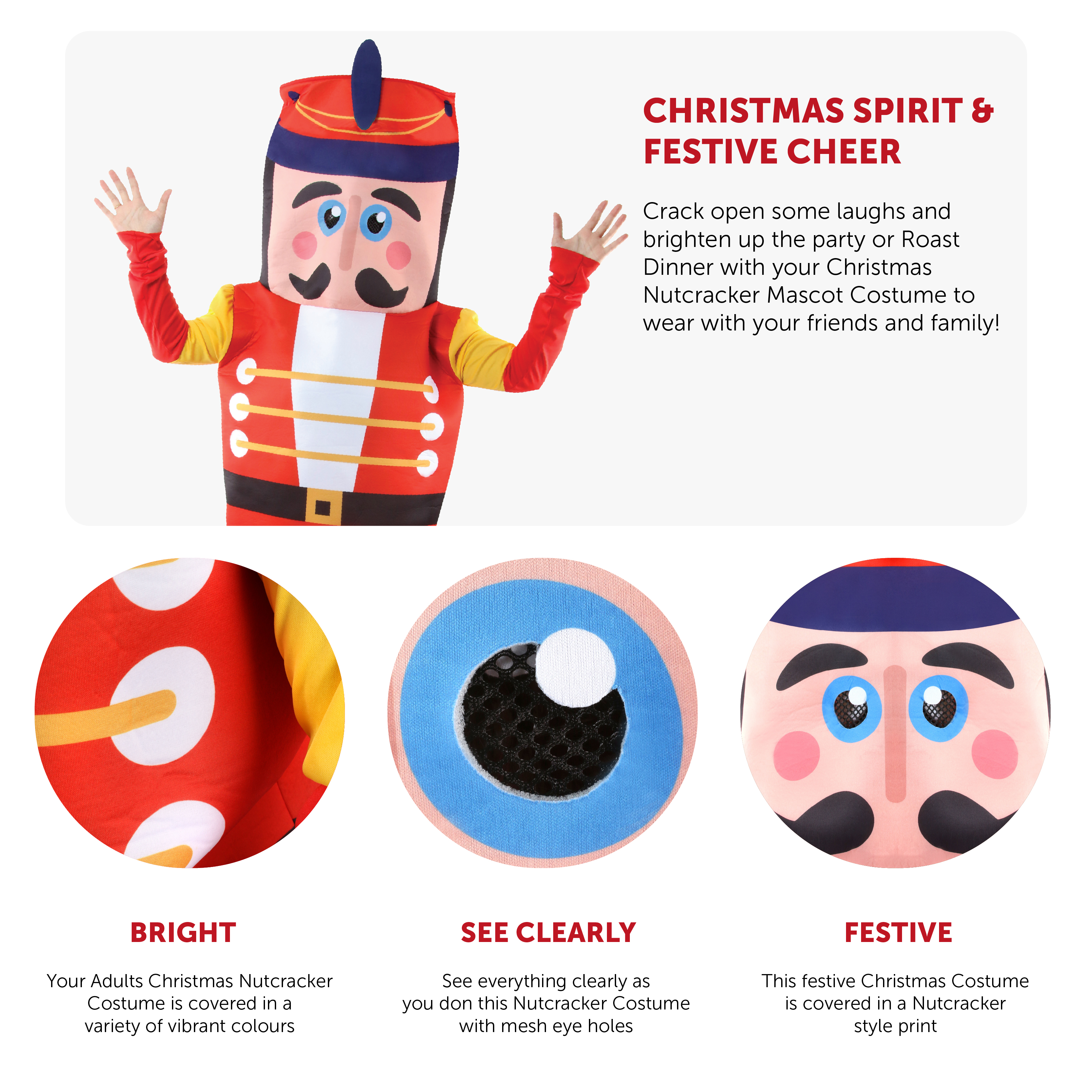 CHRISTMAS NUTCRACKER MASCOT COSTUME: Crack open some laughs and brighten up the party or Roast Dinner with your Christmas Nutcracker Mascot Costume to wear with your friends and family!