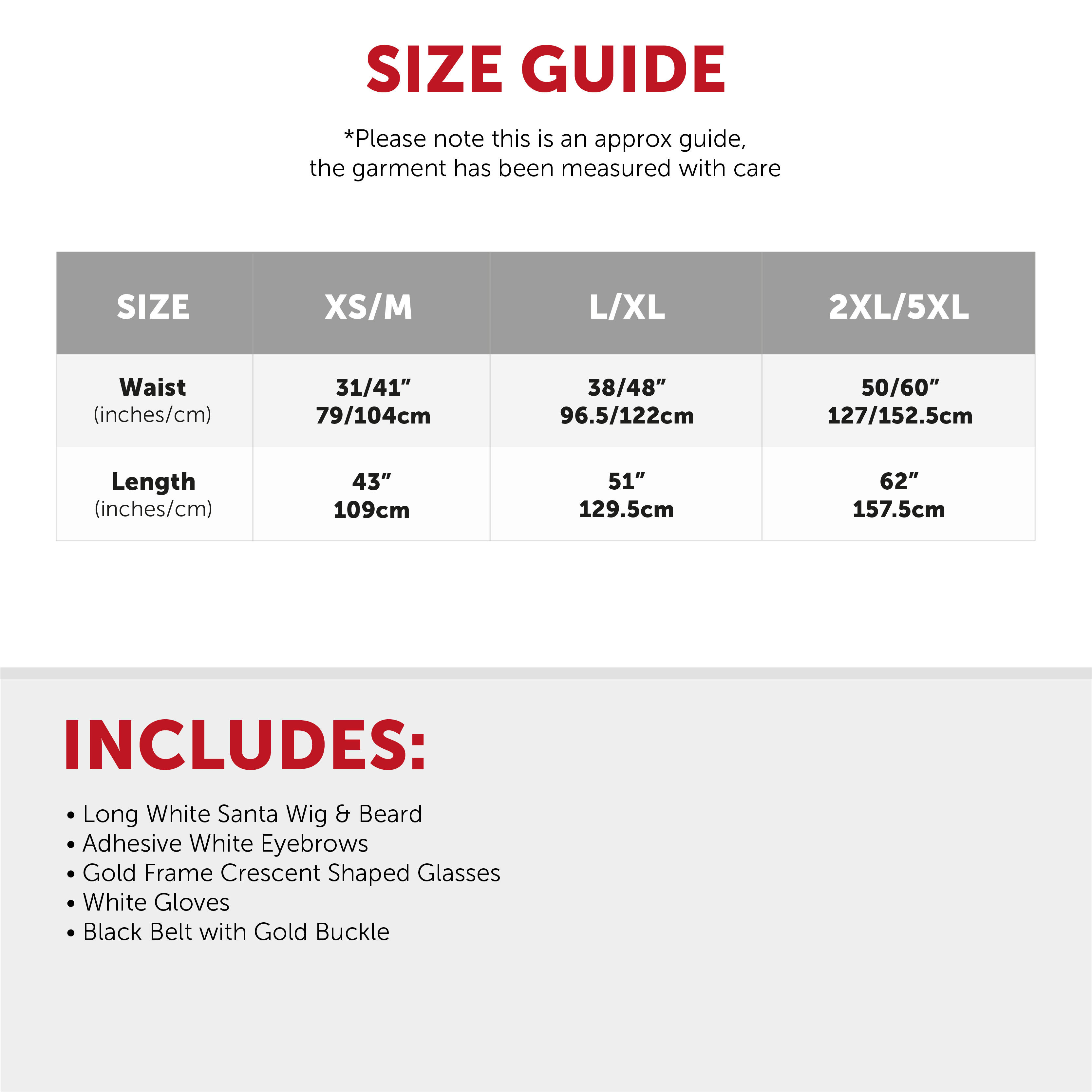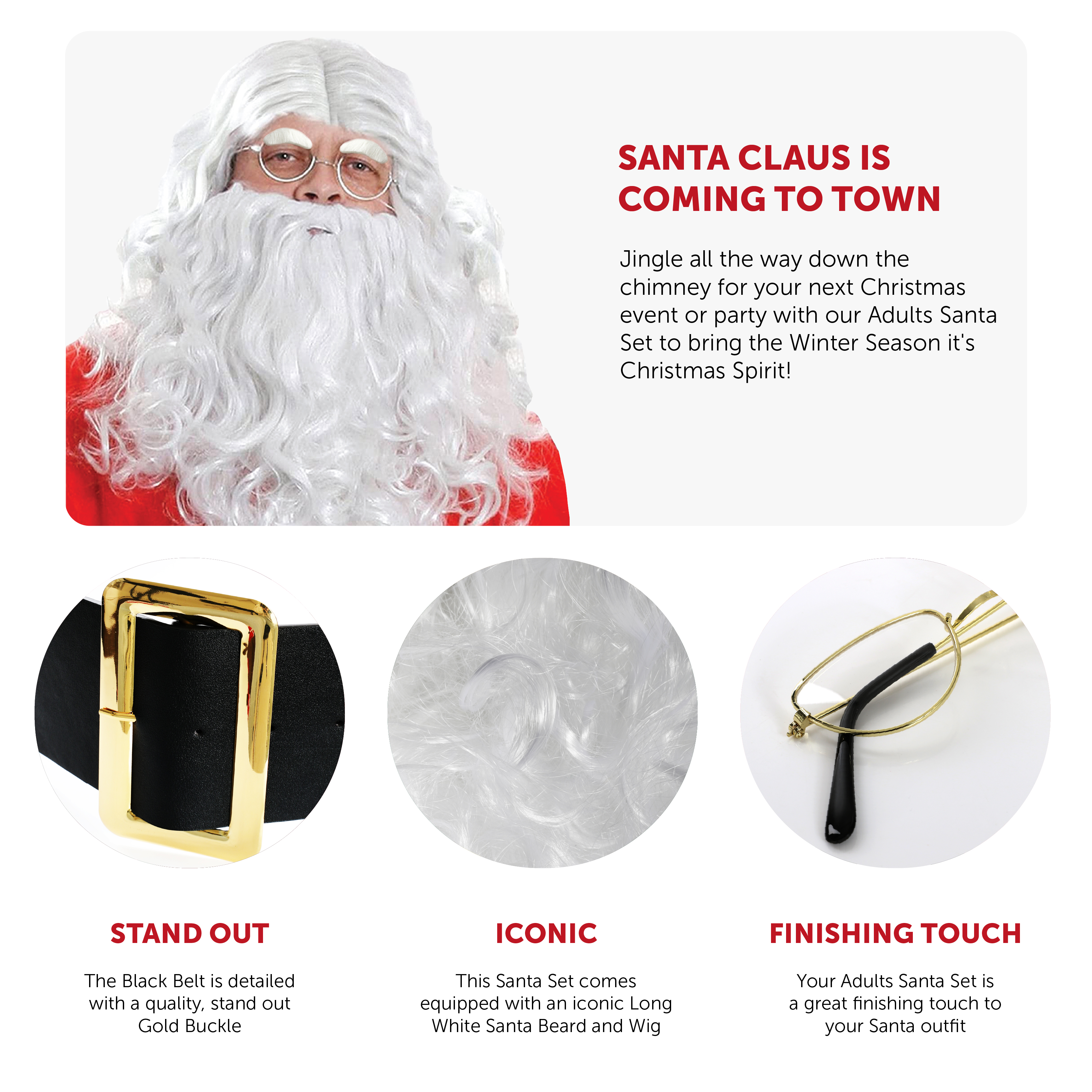 COMPLETE YOUR SANTA COSTUME: If you already have Santa's Classic Red and White Christmas Suit ready, all you need to finish the look off is this Accessory Set with a Wig, Beard, Gloves, Glasses, Eyebrows and a Belt, your Costume will be completed and looking great!