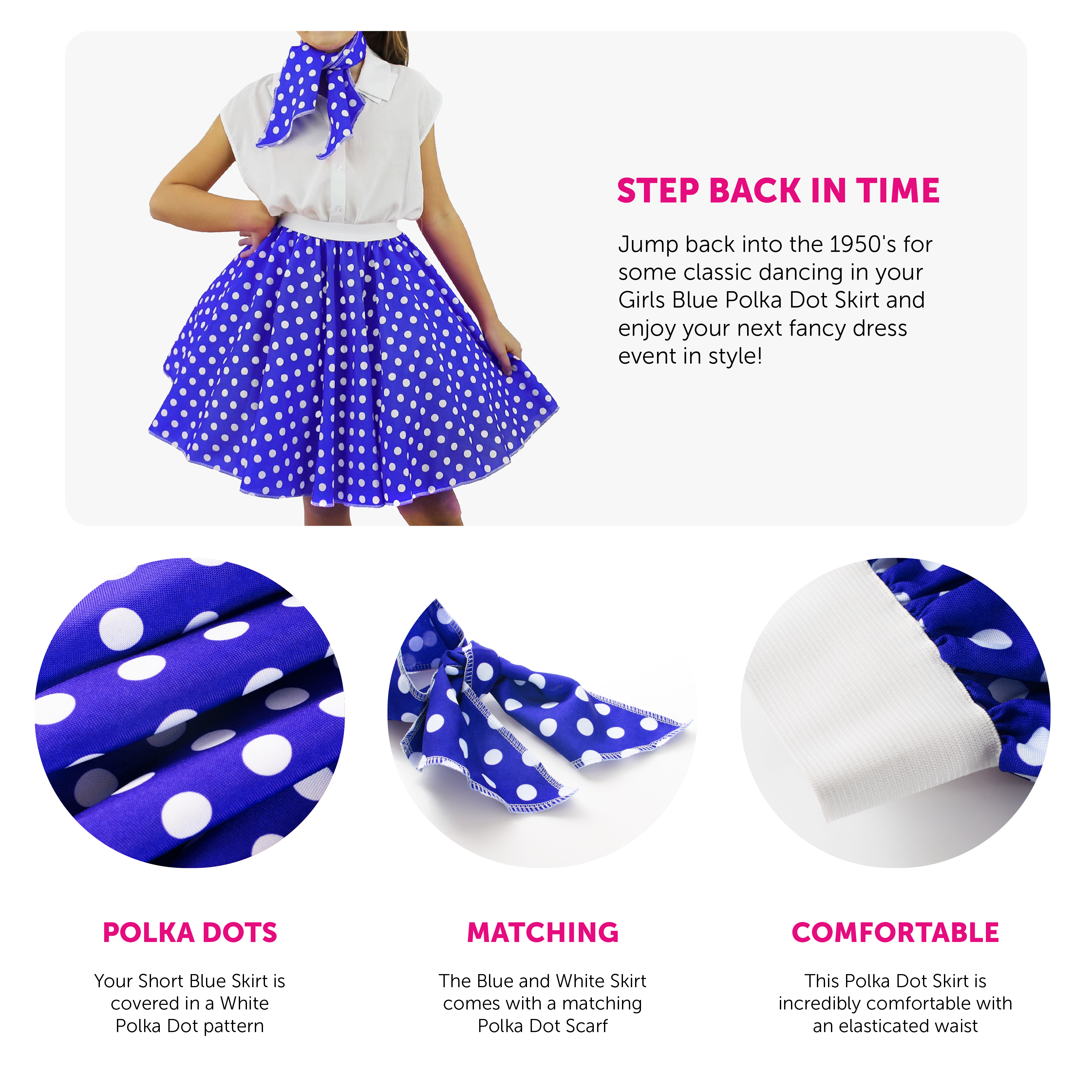 PERFECT FOR 1950'S & DANCE FANCY DRESS: Whether you’re dressing up for the times in the 1950's or in need of a dancing outfit for a stage production, then our Girls Blue Polka Dot Skirt is the perfect selection for you!