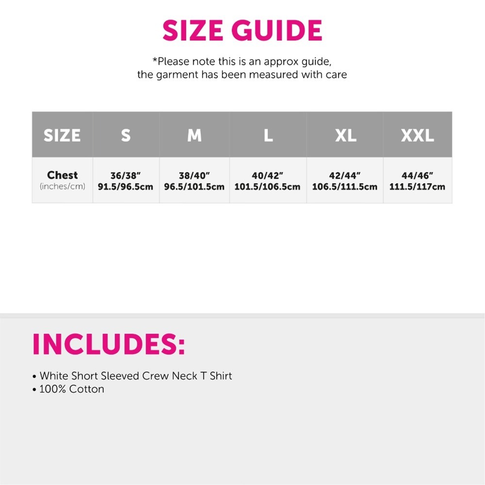 A clean, classic white cotton t-shirt that forms the foundation of this iconic pop look. Comfortable, breathable, and easy to style with accessories.