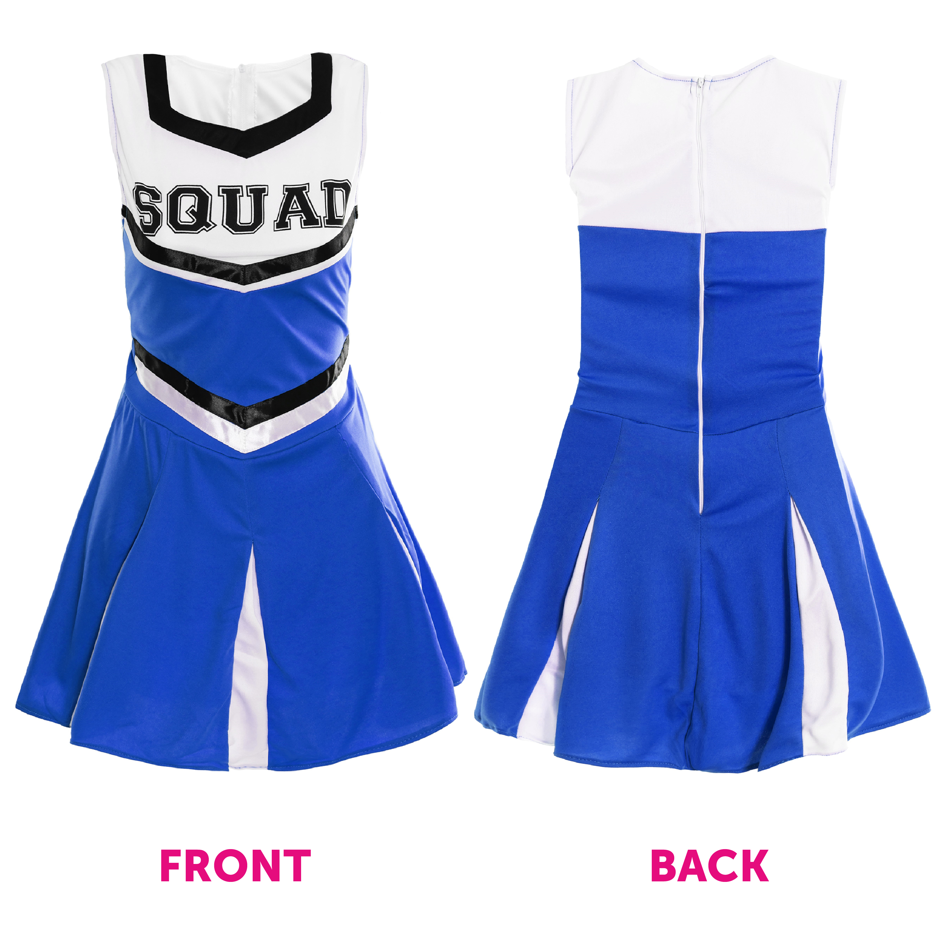 GREAT COSTUME QUALITY: With its bright colours, bold designs, and lightweight material, this Blue Cheerleader Dress is a quality Costume piece, perfect for any fancy dress party!