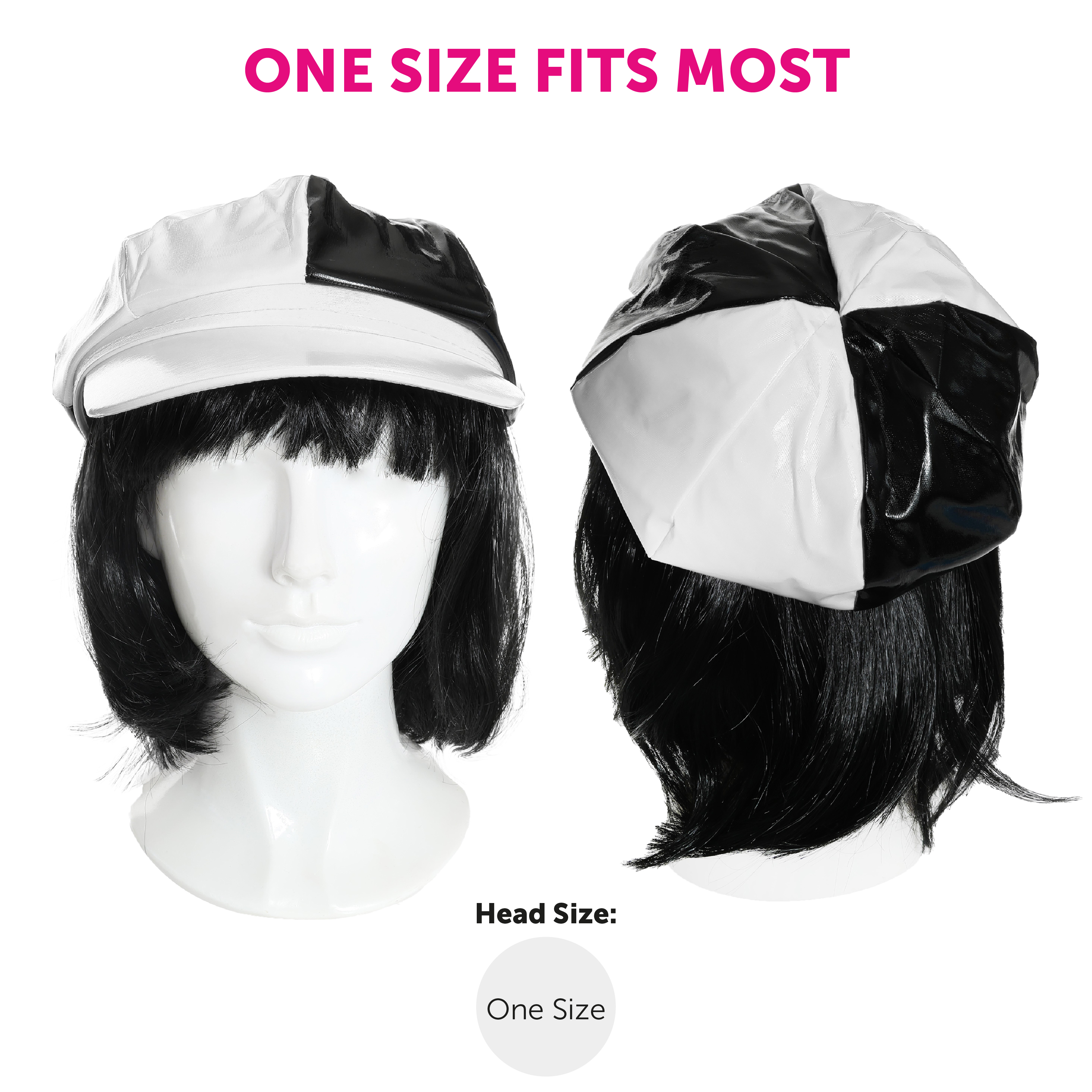 COSTUME DETAILS: Your Ladies Deluxe 60's Go Go Girl Costume includes a White & Black Checkered Shift Dress with a matching White and Black Checkered Hat, a Short Black Bob Wig, Retro White Cat Eye Sunglasses, and Black & White Polka Dot Geometric Earrings, the perfect Costume for any 1960's themed party!