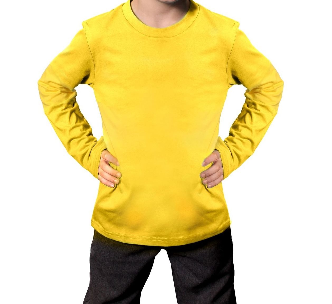 A bright yellow long-sleeve top that forms the base of this happy character costume.