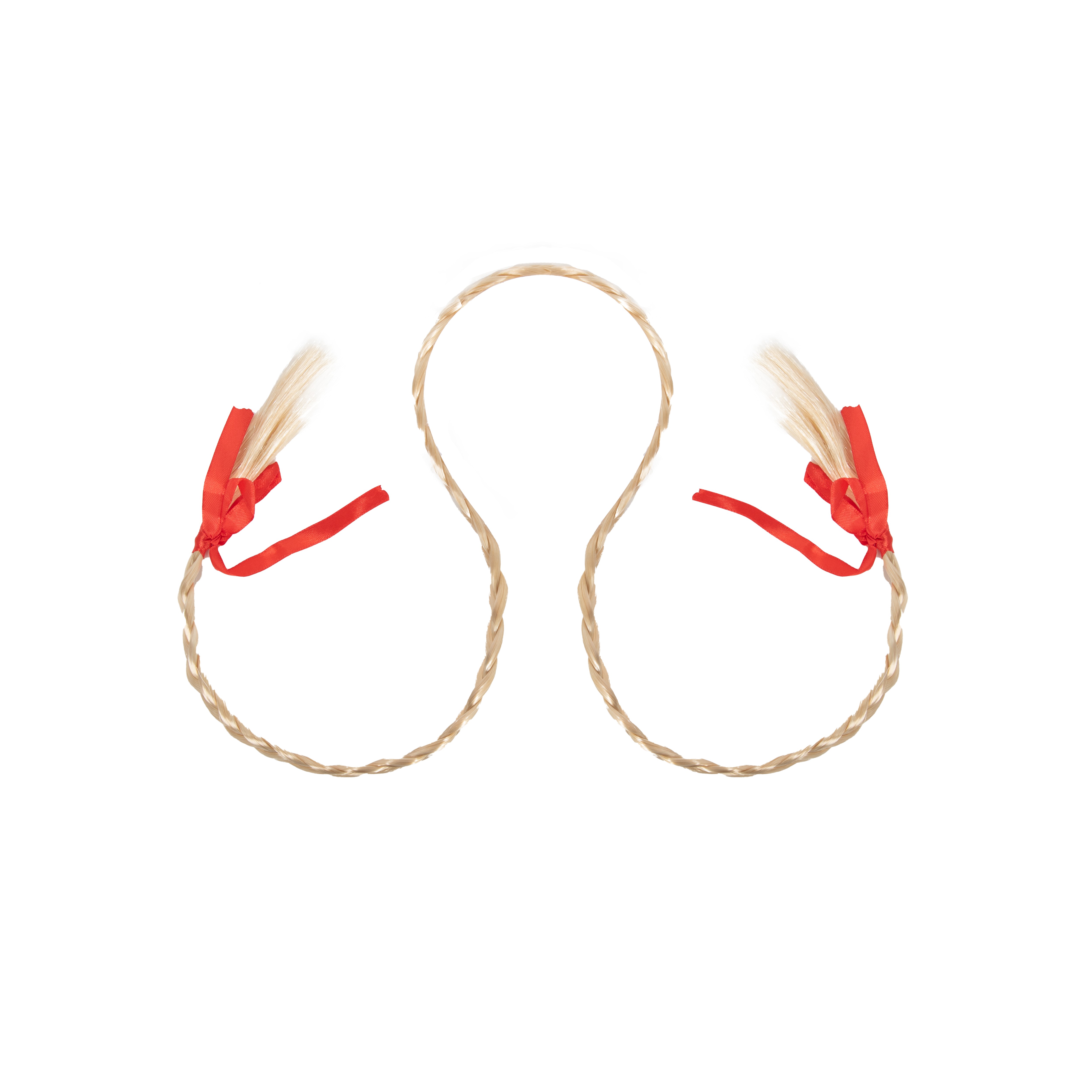 LONG BLONDE PLAIT WIG WITH RED RIBBONS