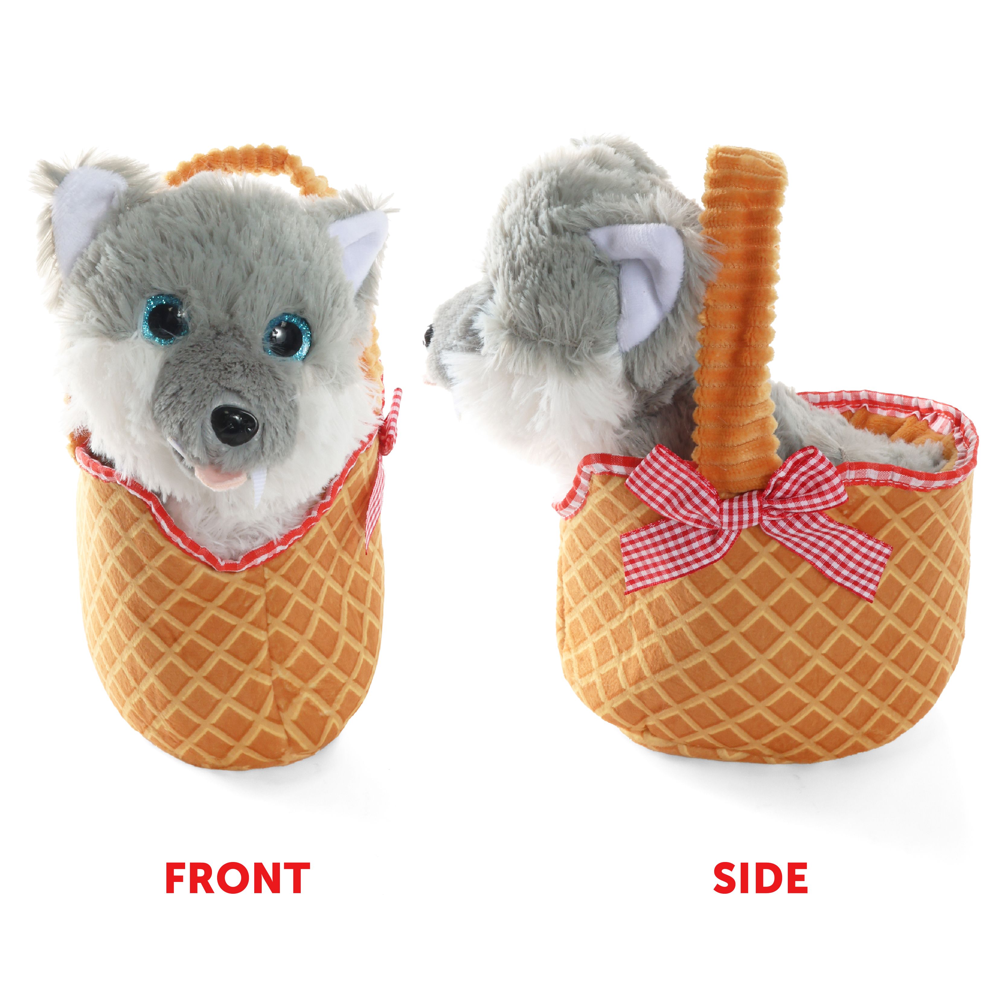 Complete your fairy-tale adventure with the included Soft Gingham Basket and Plush Wolf. The soft brown basket features a red gingham lining inside and a decorative bow on the side, designed to perfectly complement your Little Red Riding Hood look. Inside sits a removable Grey Plush Wolf — a cute, lightweight companion you can carry along or display as part of your costume.
