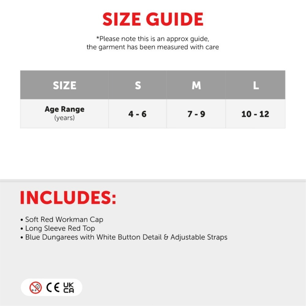 Kids Red Super Workman Costume | 6 Pcs | Dungarees, Top, Hat, Gloves, Tash & Tool Belt £13.99