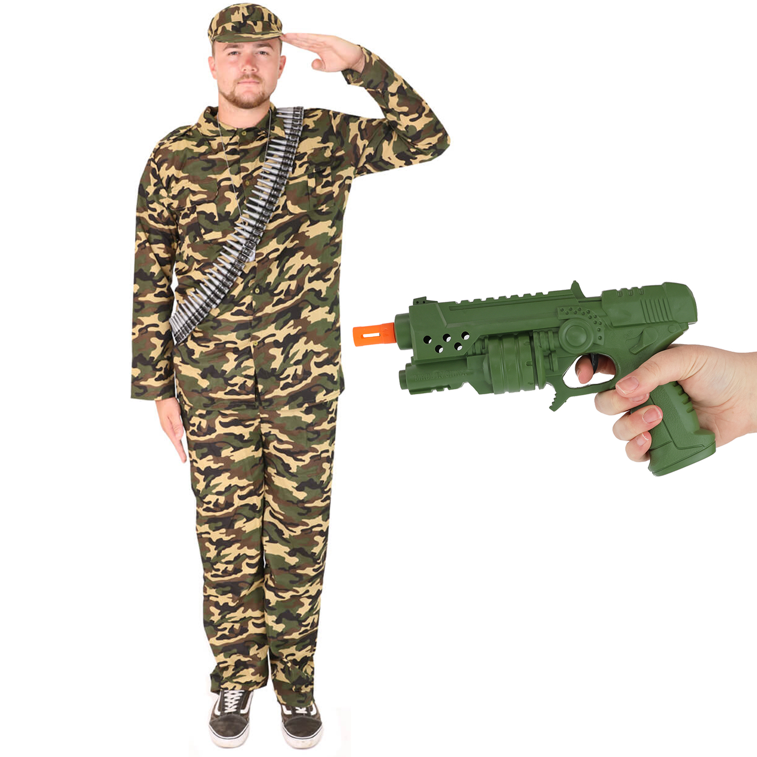 MEN’S ARMY COSTUME WITH TOY GUN & BULLET BELT