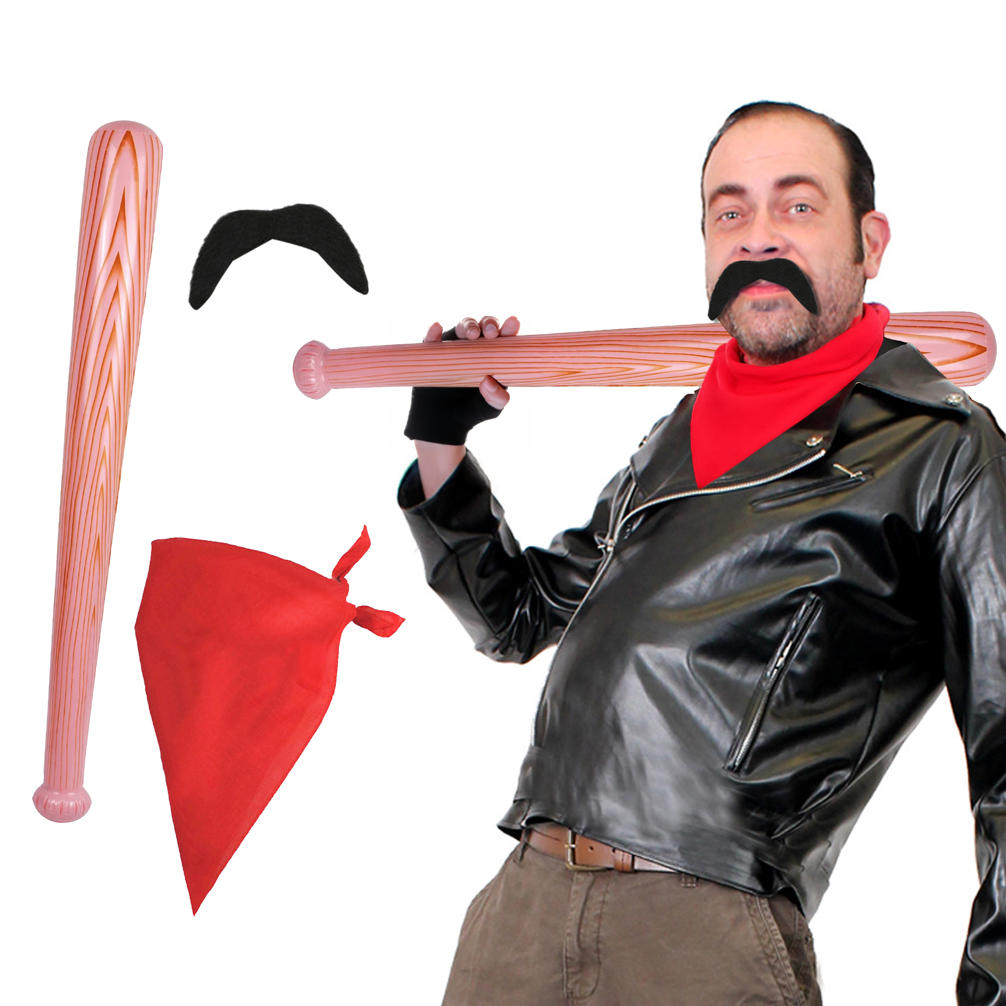 Men's Negan Costume | 4 Pcs | Leather Jacket, Bandana, Inflatable Bat & Moustache
