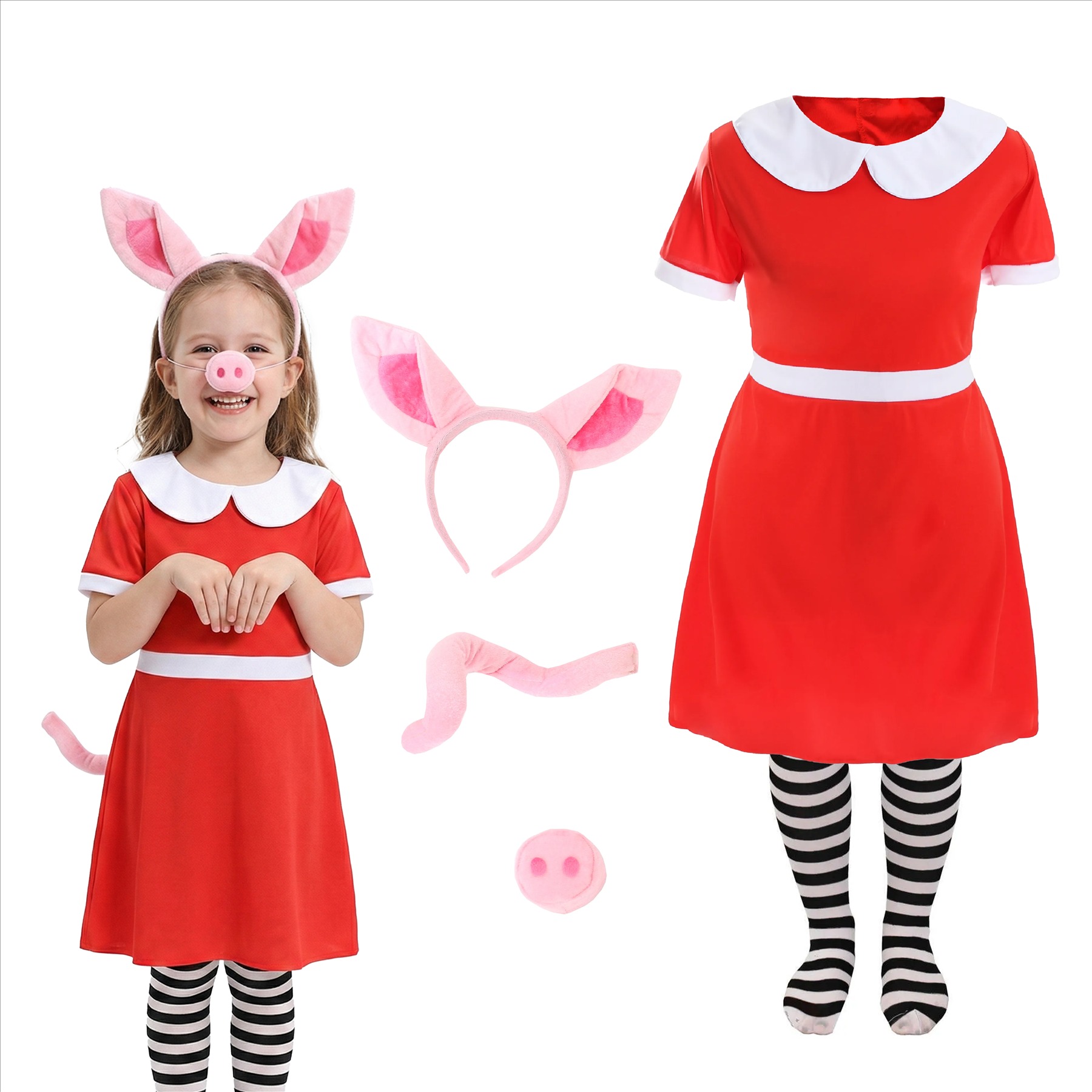 Girls Olivia Pig Costume | 5 Pcs | Dress, Tights, Ears, Nose & Tail