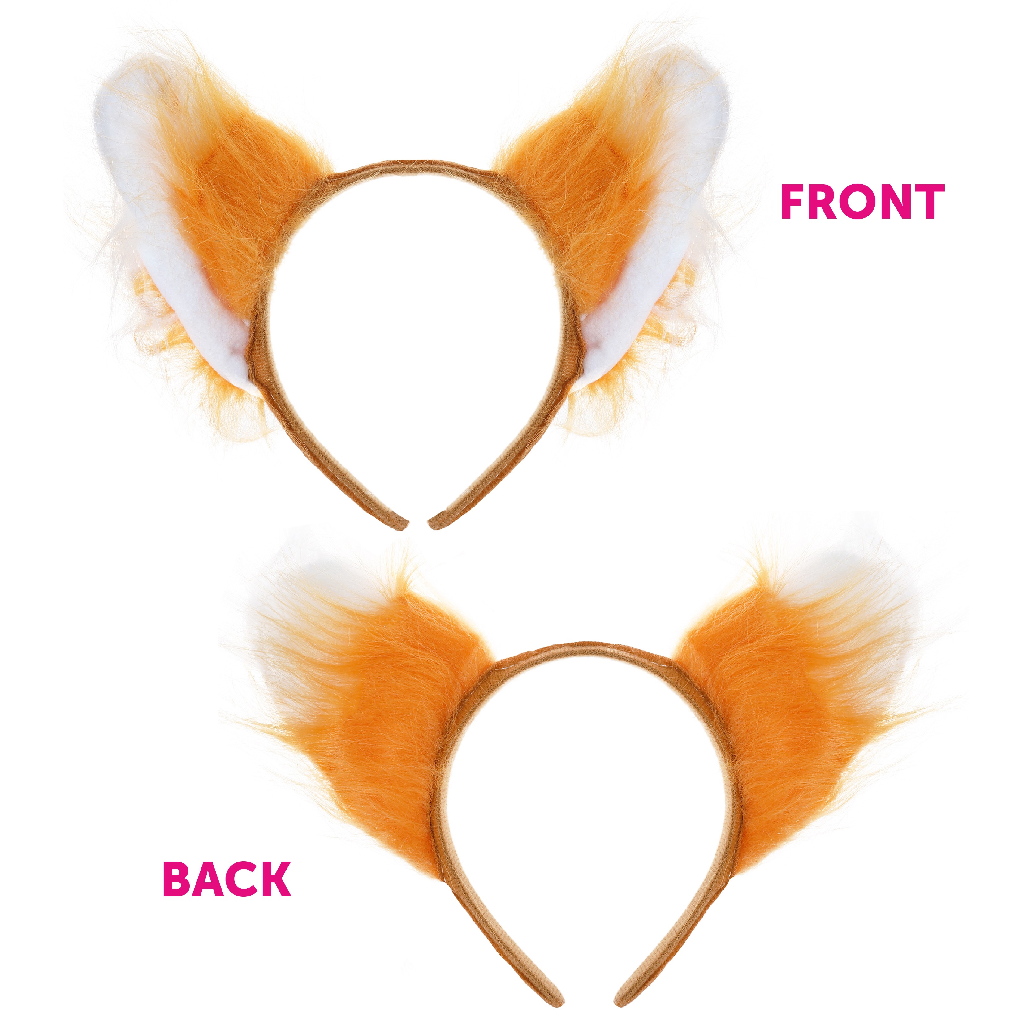 - Orange headband with fluffy orange and white fox ears