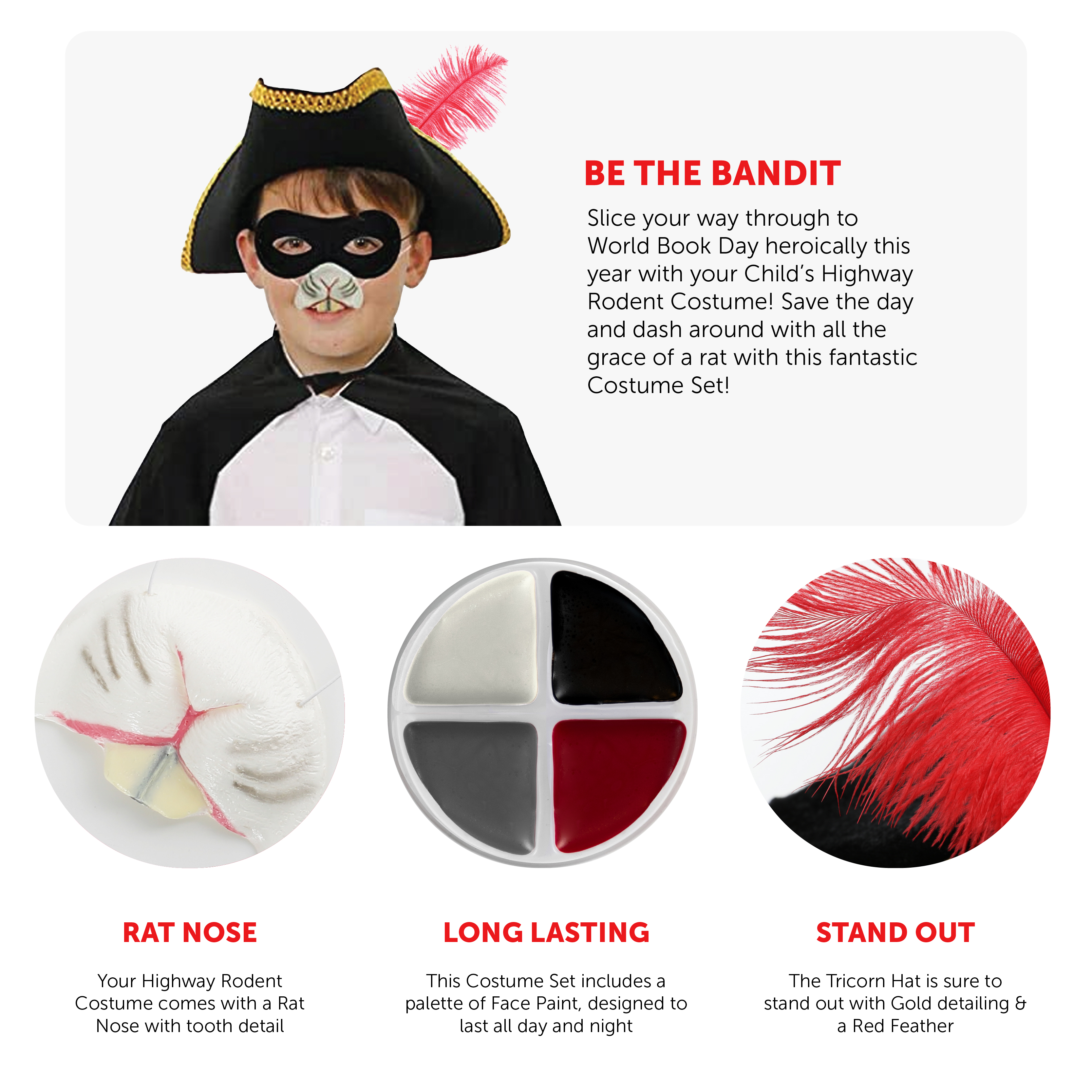 Childs Highway Rodent Costume - Feather Tricorn Hat, Cape, Nose, Mask, Sword & Face Paint   £14.99
