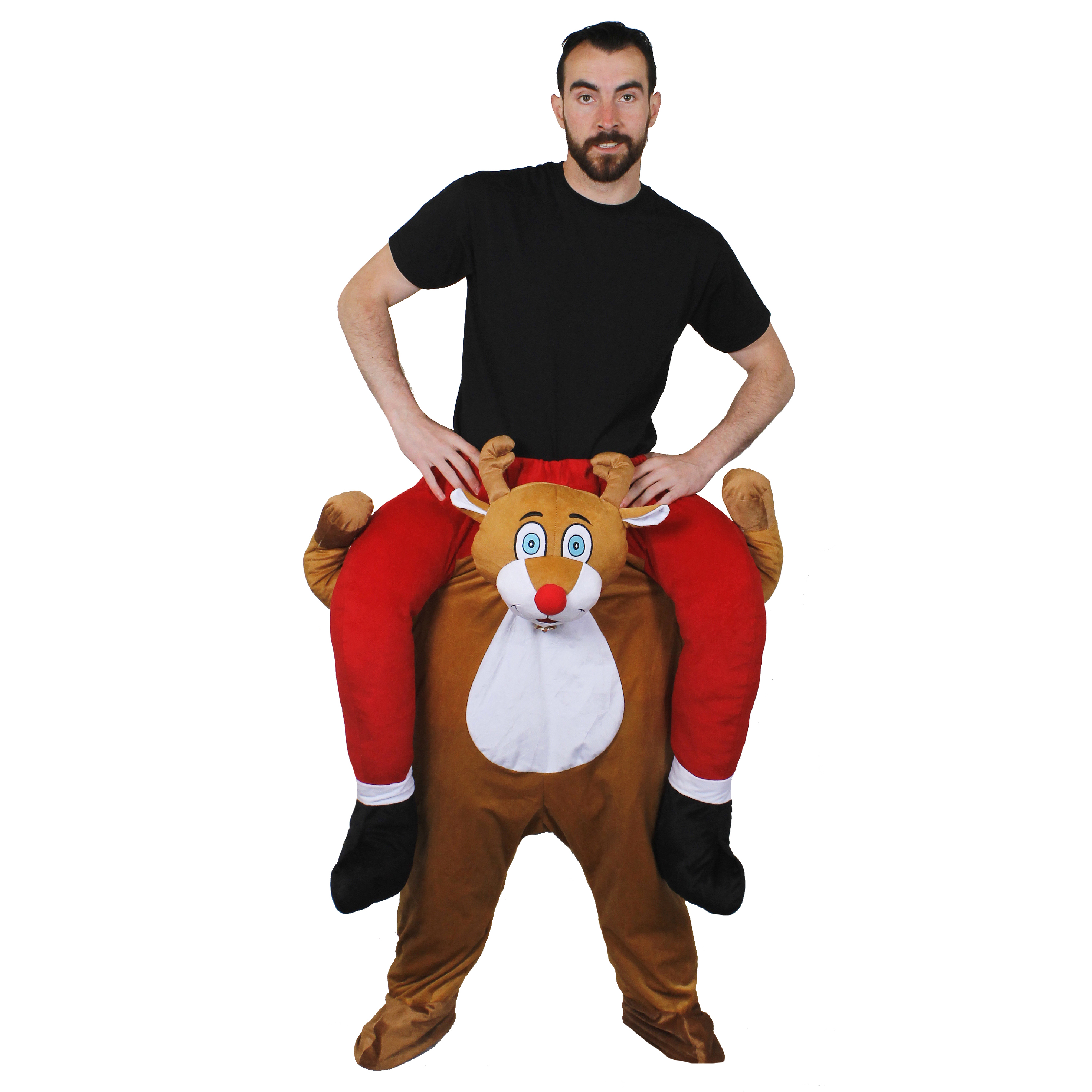 REINDEER PICK ME UP DETAILS: Your Reindeer Pick Me Up Costume is a Red Nose Reindeer costume with a Reindeer ride-on novelty effect with a pair of hands and legs to create the illusion of being carried for some great laughs!
