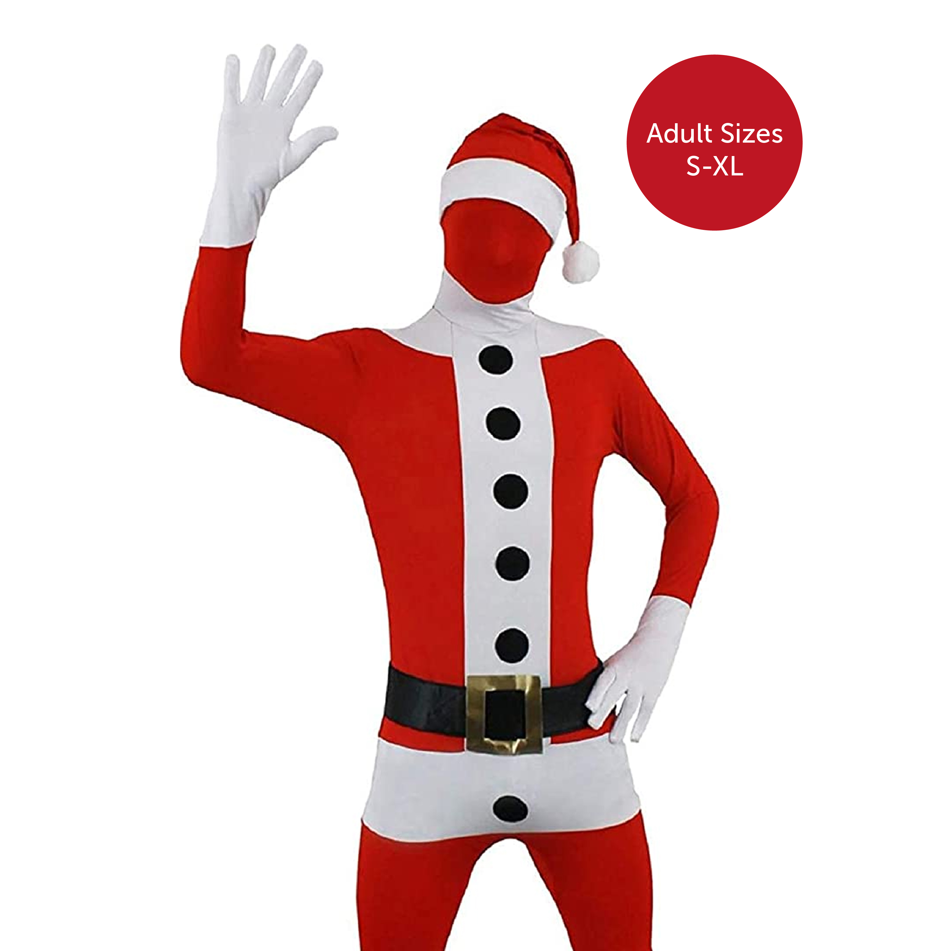 PERFECT FOR CHRISTMAS AND ELF FANCY DRESS: Whether you’re getting ready to jingle all the way to your next Christmas event, or to have some fun at your next Christmas-themed occasion, our Adults Santa Skinsuit Costume will help you slip straight in!