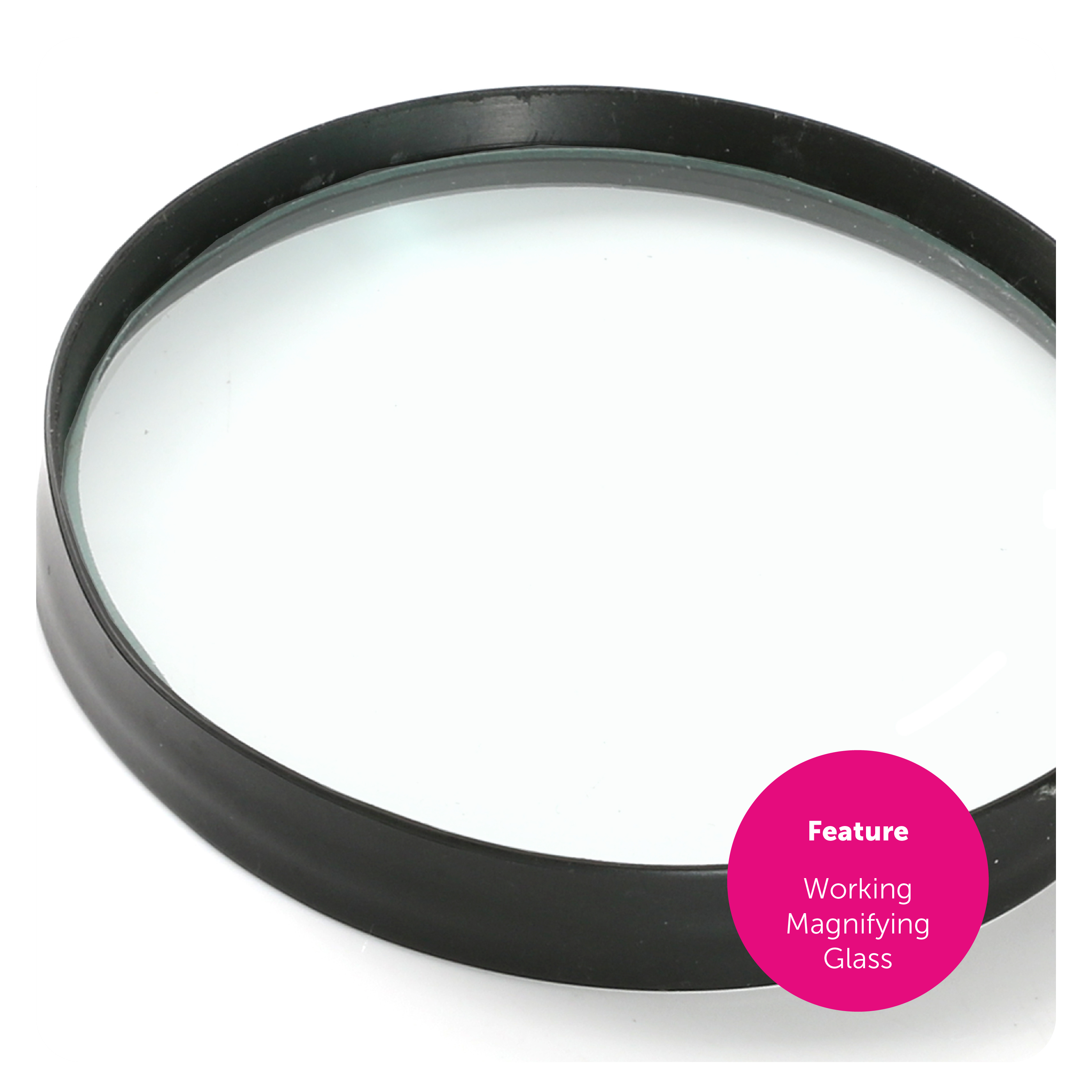 PERFECT SIZED ACCESSORY: Your Detective Magnifying Glass is a great size, with the Glass diameter measuring 3.5" (9cm), the perfect size to carry around at any fancy dress event!