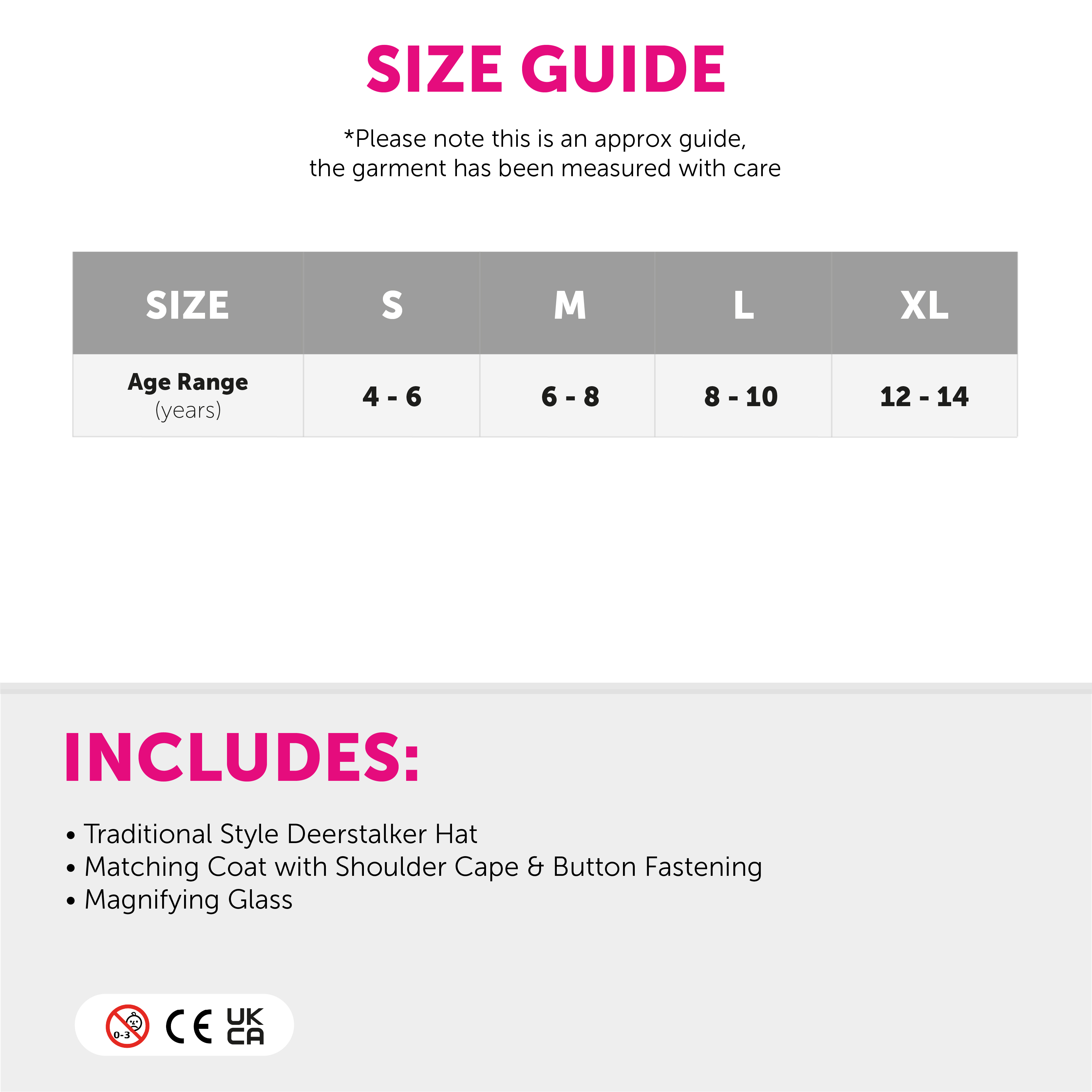 AVAILABLE IN MULTIPLE SIZES: Our Child's Detective Costume is available in various sizes, ranging from Small to X-Large: Small 4 - 6 years | Medium 6 - 8 years | Large 8 - 10 years | X-Large 12 - 14 years