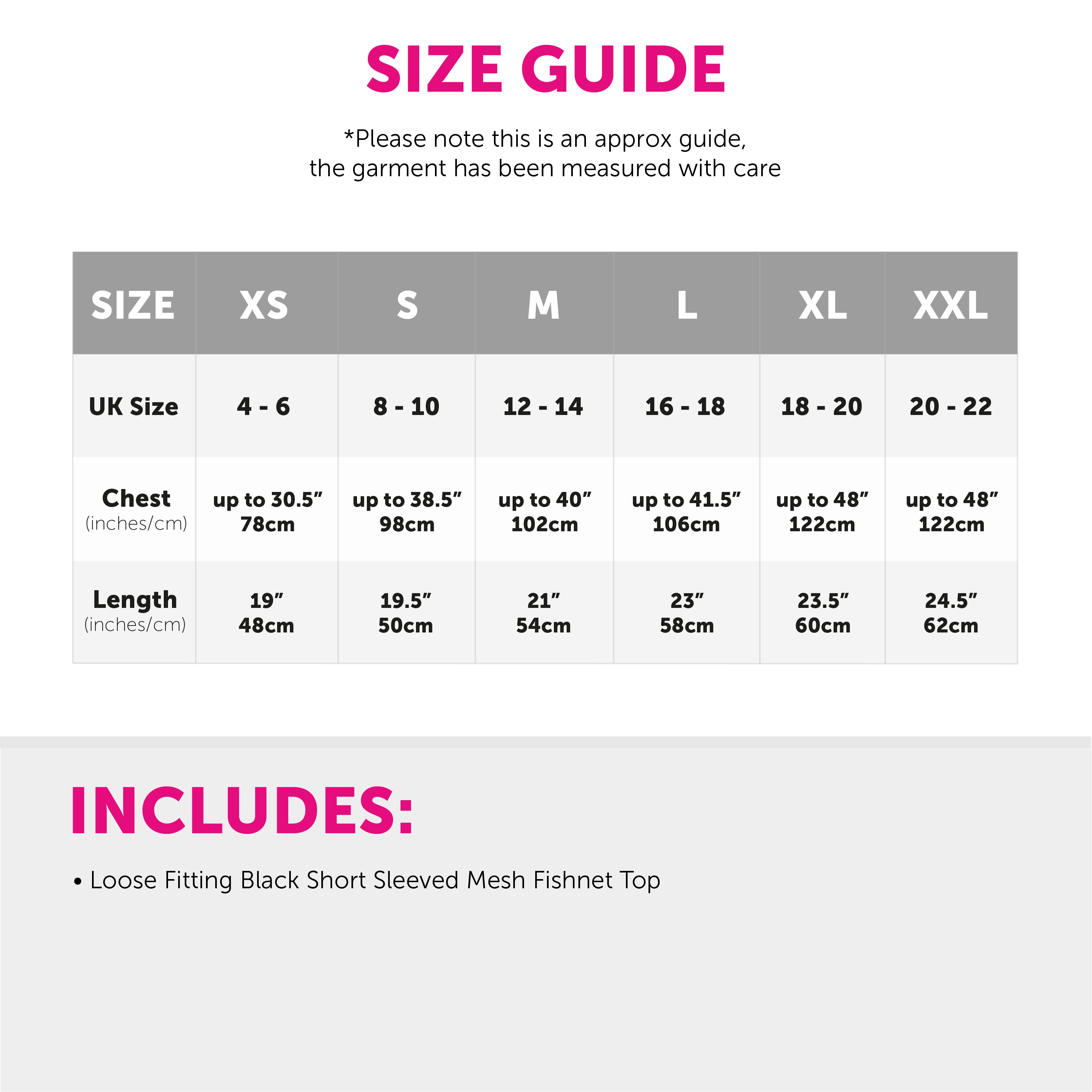 - X-Large (UK 18–20): Chest up to 48" (122cm), Length 23.5" (60cm)
