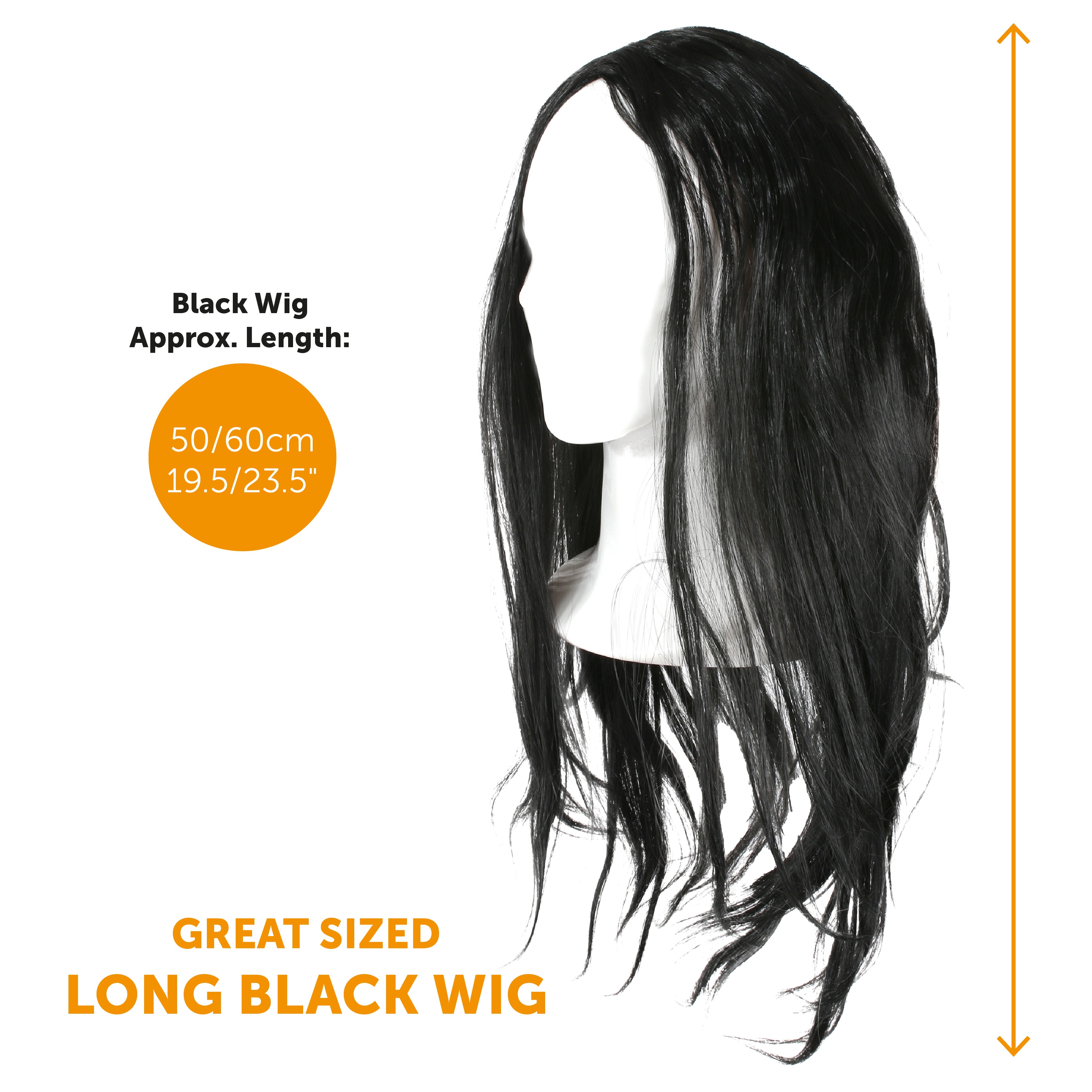 A dramatic long black wig that enhances the intense, cinematic wrestler look.
