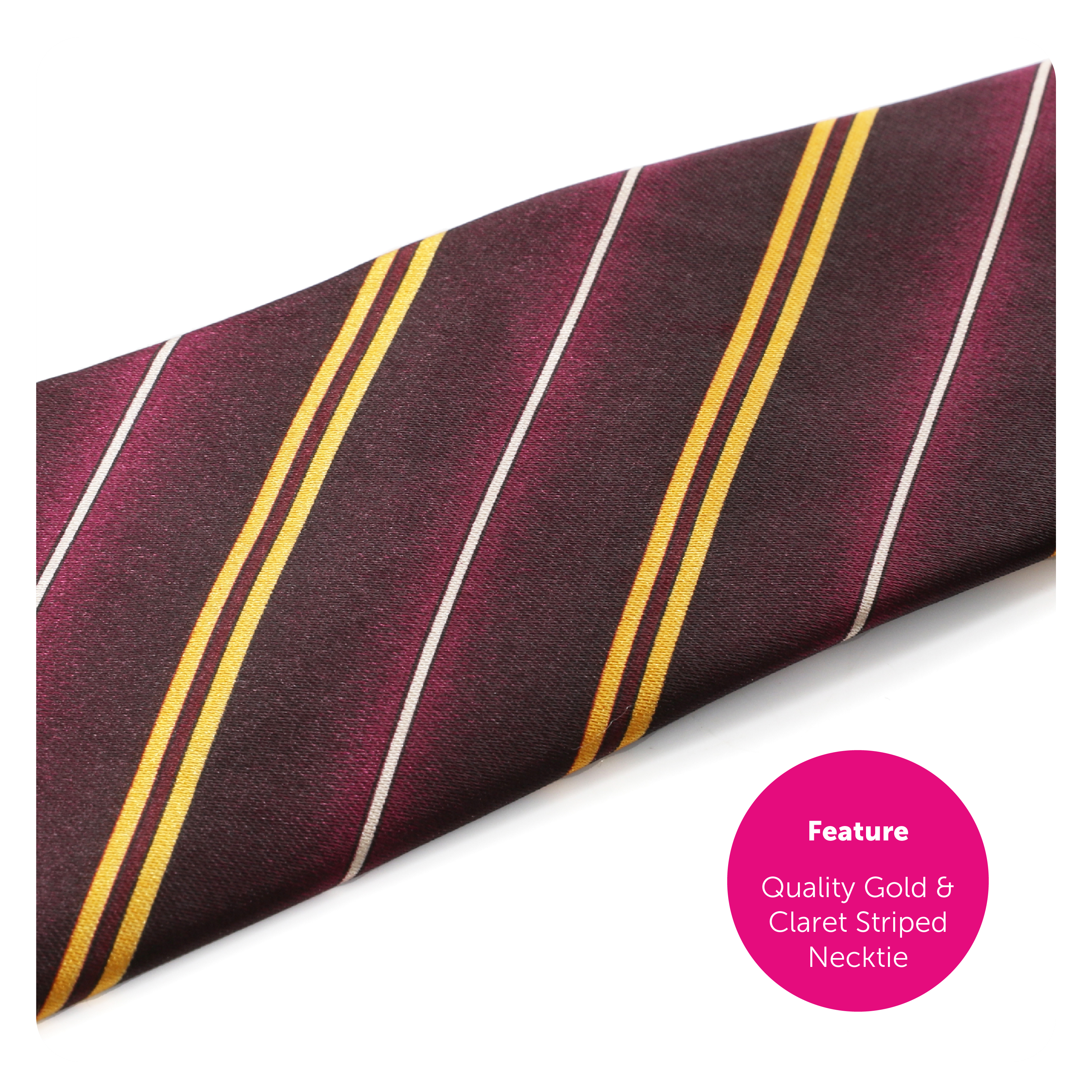 COSTUME DETAILS: Your Child’s Wizard Costume includes a Black Velour Cape, a Gold and Claret Striped Necktie, Plastic Round Frame Glasses, and a Plastic Wand, a classic and iconic look for all young aspiring Wizards to wear proudly!